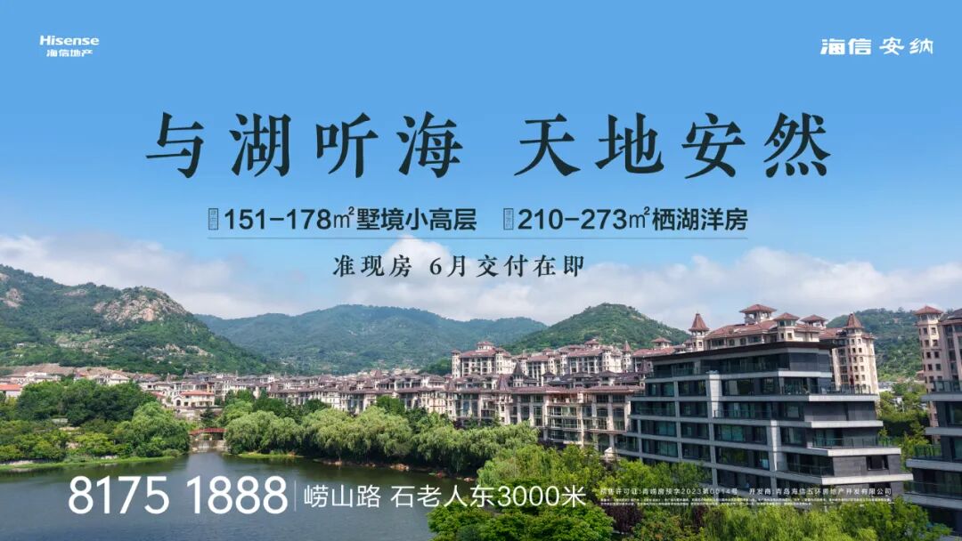 海信·安纳,崂山前海,低密洋房/小高层,依山、揽湖、享林、观海,建面约151-273㎡准现房,实景可鉴。