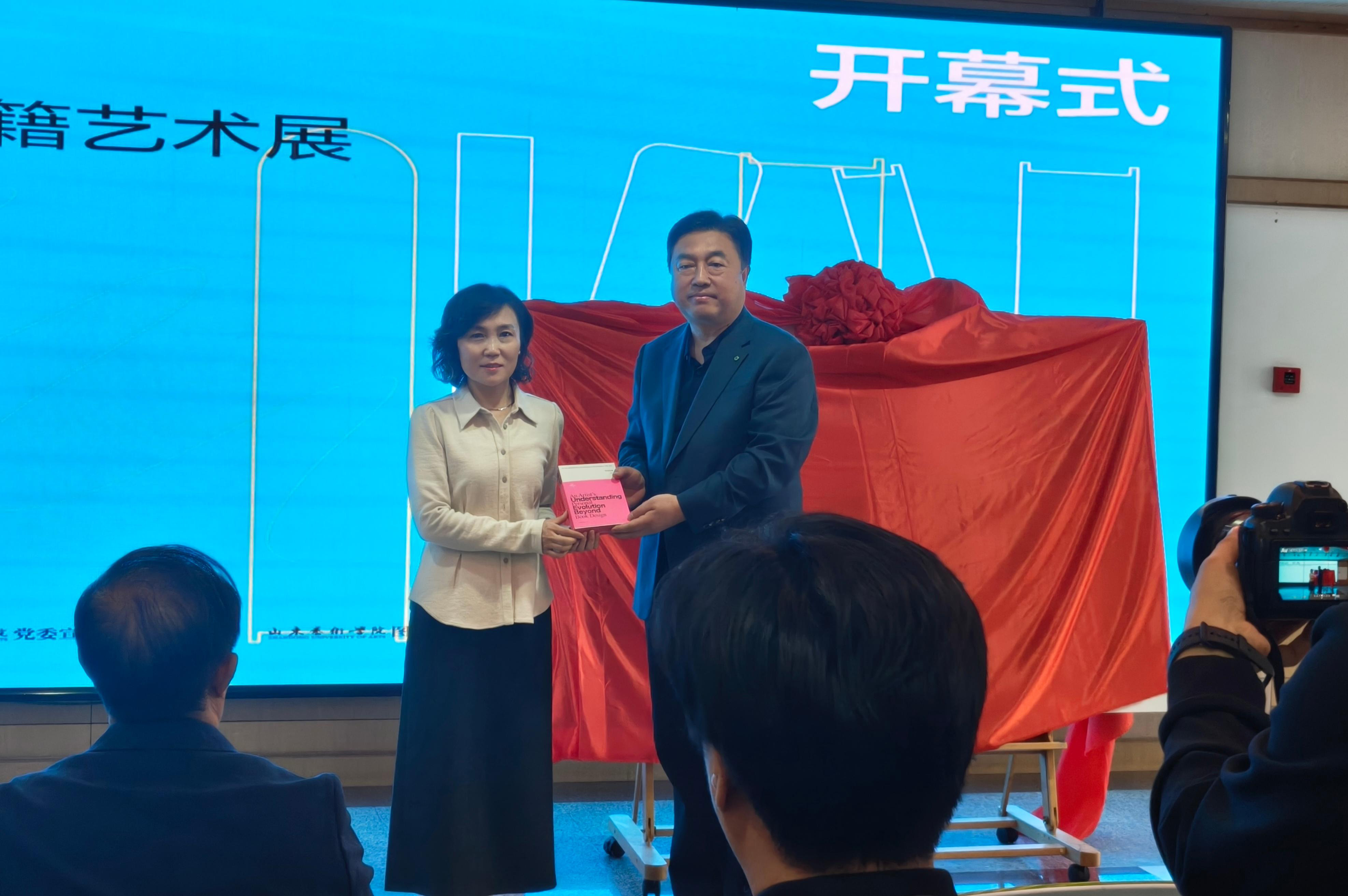 开幕式上,刘显世、苏茂兴为艺术展揭幕。山东艺术学院设计学院教授姜海涛向山东省图书馆捐赠书籍作品,邢学军接受捐赠。