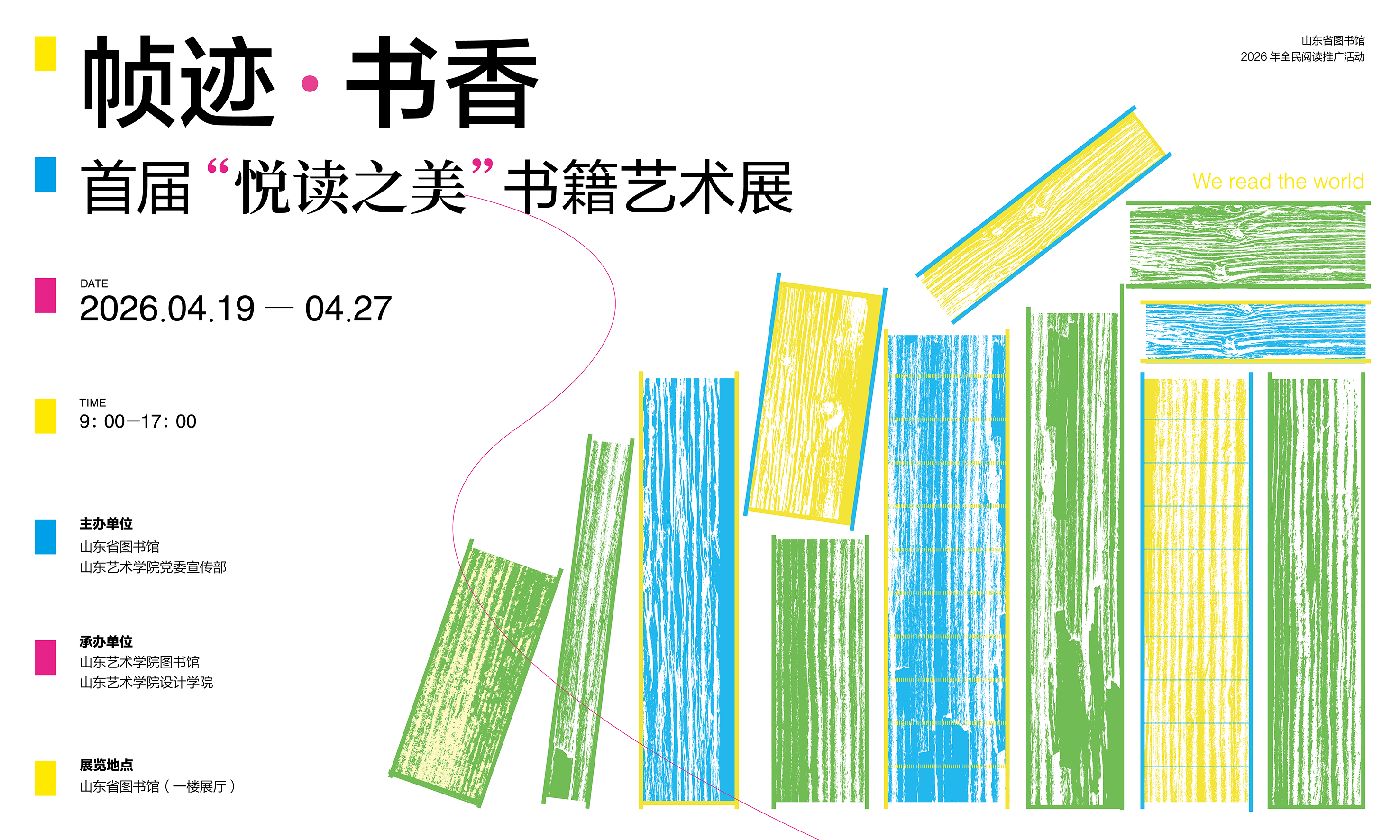 作为馆校协同打造的2026年全民阅读活动周重点活动,“帧迹·书香”书籍艺术展汇聚设计学院师生100余件优秀书籍设计作品,并特邀山东工艺美术学院设计专业教师精品力作参展,参展作品题材丰富、内涵多元,涵盖书籍装帧设计、插画创作等多种形式,既扎根中华优秀传统文化与非遗传承,又紧扣无障碍阅读、老年群体关爱等公益议题,也囊括“Z世代”青年表达等创新形态,充分体现了山东艺术学院学科专业特色,也彰显了艺术院校的创作实力与人文担当。