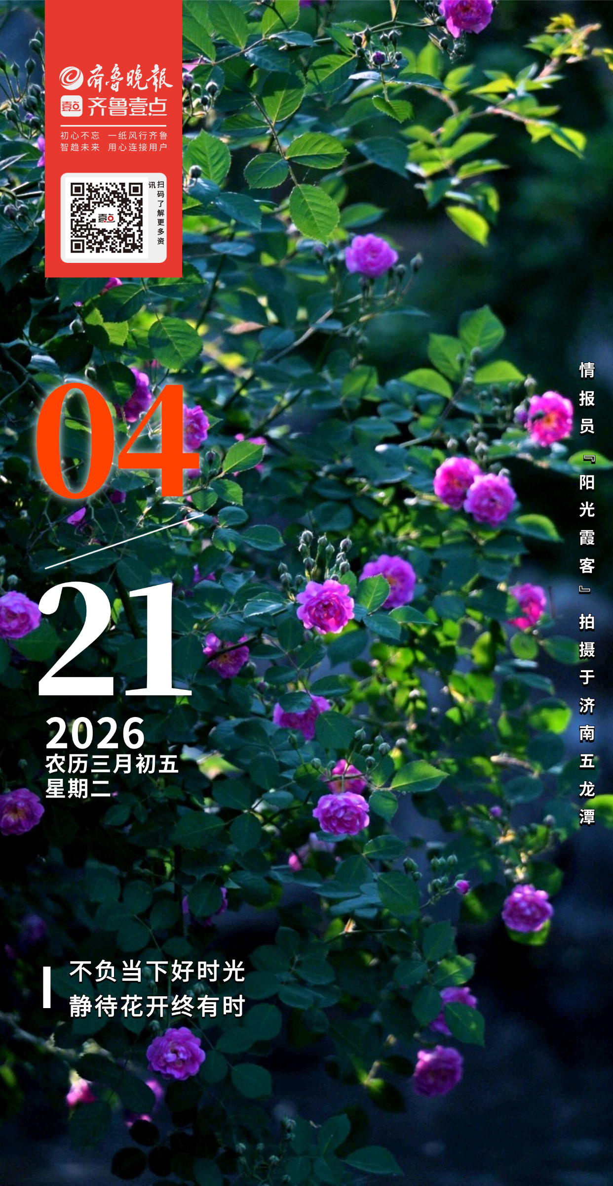 【参与方式】:通过“齐鲁壹点”APP,在情报站参与话题#壹点日历摄影作品征集,红包好礼等你#发送作品及详细介绍(1)拍摄地点(2)拍摄场景(3)拍摄月份日期(4)作品说明即可。