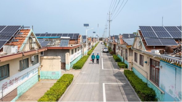 国网青岛供电公司工作人员到胶州市纪家庄村巡检光伏设备