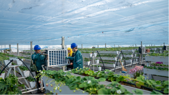 国网青岛供电公司工作人员到胶州上合·清水湾数字农业示范园对智能环控设备进行用电安全检查