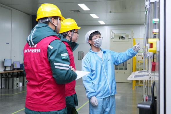 山东省重点项目鹏辉能源储能电池生产项目投产后,国网青岛供电公司员工回访鹏辉能源,为其提出设备维护建议。