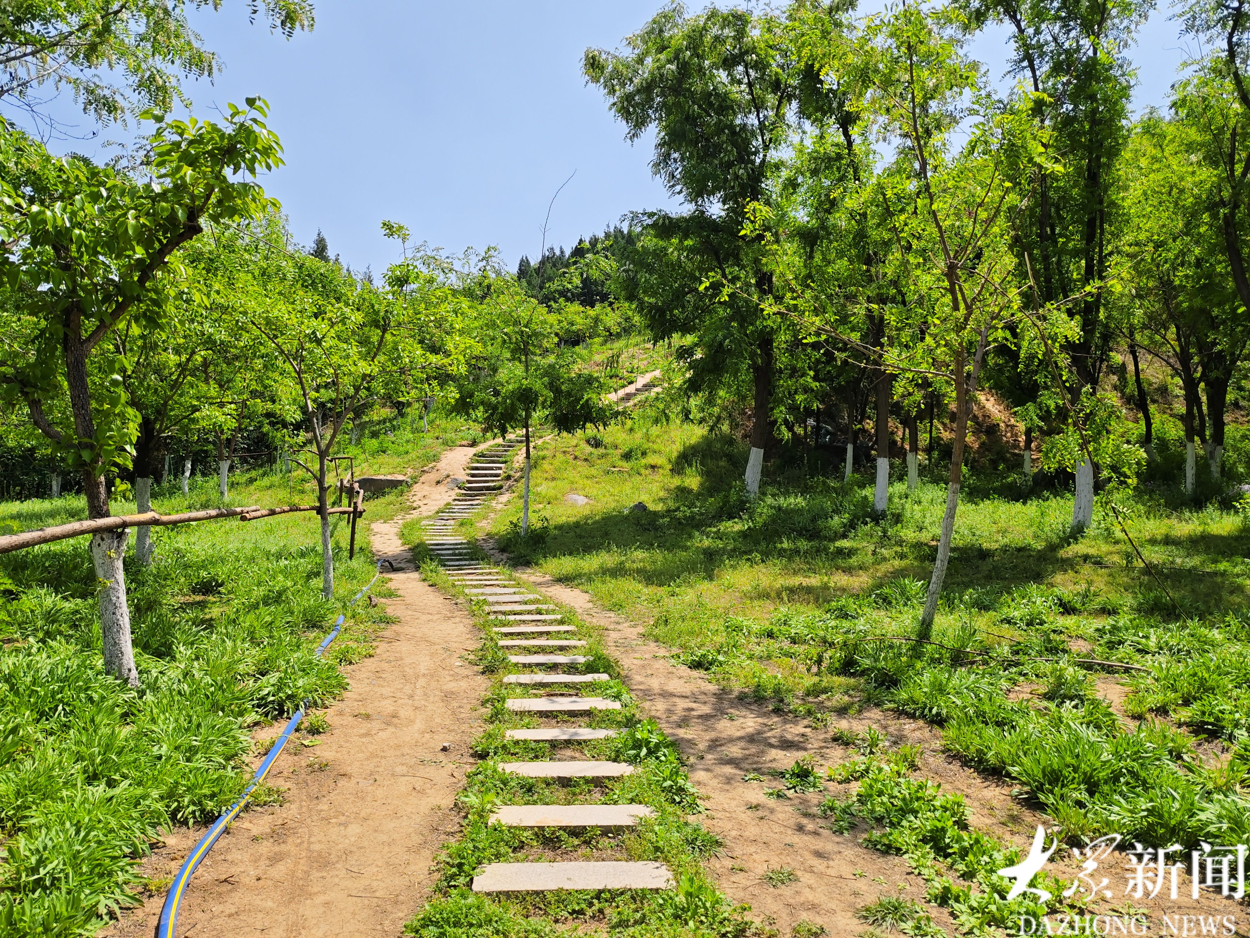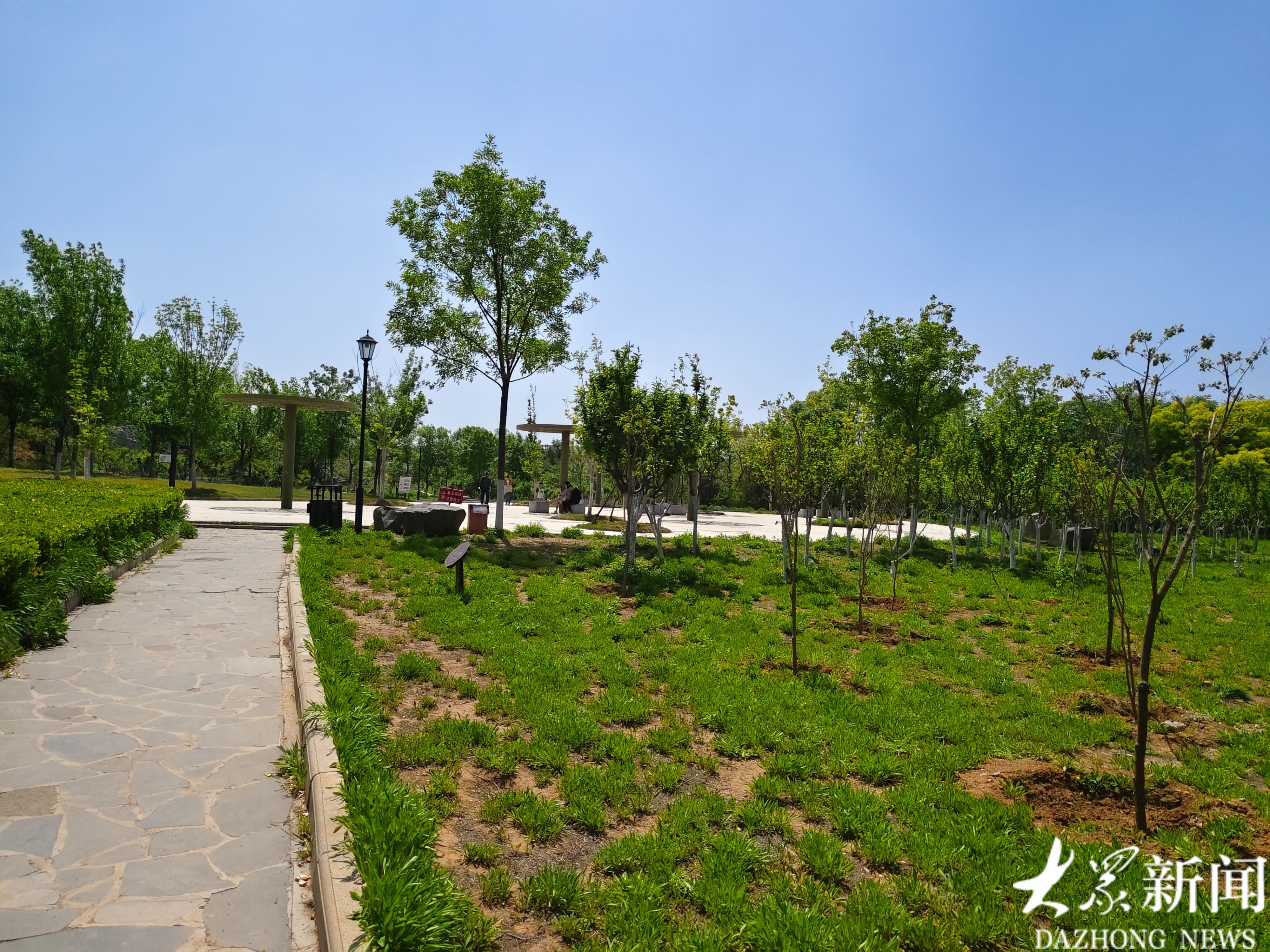 走进公园,一股清新的草木气息扑面而来,混杂着泥土的芬芳与山间野花的淡香,瞬间驱散了尘世的喧嚣与疲惫,连呼吸都变得轻盈起来。沿着随山就势的休闲步道前行,脚下是平缓的石阶,身旁是蓊郁的林木,侧柏挺拔、银杏婆娑,不知名的灌木丛生其间,枝叶间缀着细碎的繁花,风一吹,便轻轻摇曳,似在迎宾。