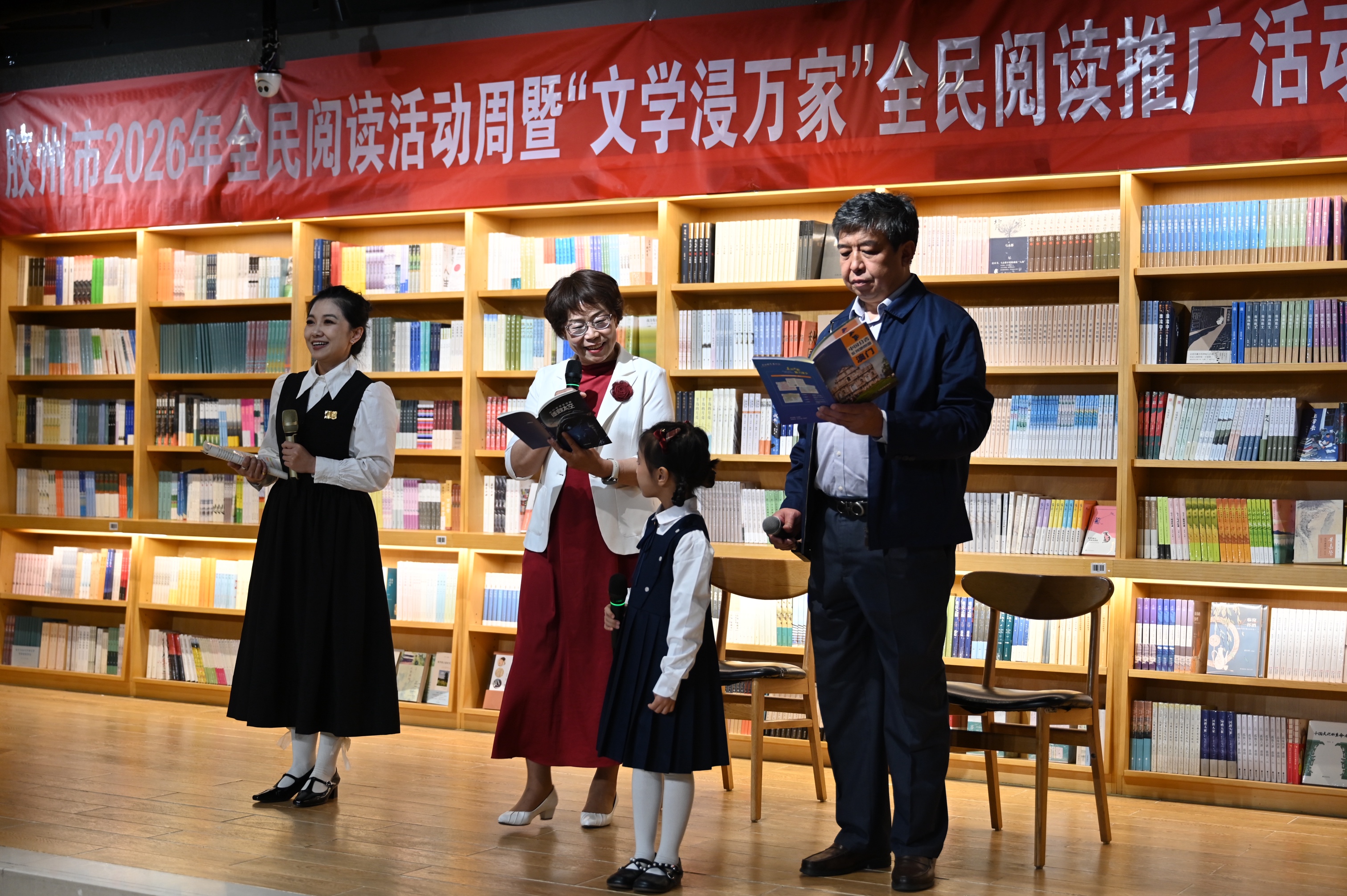 “我常想读书人是世间幸福人,因为他除了拥有现实的世界之外,还拥有另一个更为浩瀚也更为丰富的世界……”4月21日上午,春日暖阳透过书架间隙洒落书页,散文名篇在朗诵者口中缓缓流淌,胶州市新华书店·涵泳复合阅读空间内书声琅琅、座无虚席。胶州市2026年全民阅读活动周暨“文学浸万家”全民阅读推广活动启动仪式在此举行,《胶州市作家协会“文学浸万家”阅读推广活动方案》正式发布。