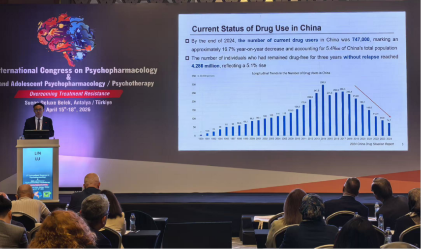 大会开幕主论坛环节,陆林受邀作题为《Medical Potential of Cannabis & Psychedelics: Policy, Challenges & Future Directions》的主题报告。报告紧扣国际前沿热点,系统阐述了大麻与致幻剂在精神疾病治疗中的医学潜力、作用机制、研究进展,深入分析全球监管政策、临床转化挑战与未来发展方向,全面展示我国在相关领域的研究成果与学术思考,获得与会专家高度评价与广泛关注。