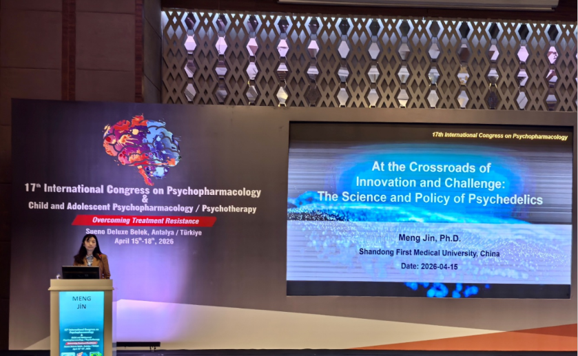 在大会“致幻剂与精神兴奋剂”专题论坛,校(院)靳梦教授作题为《At the Crossroads of Innovation and Challenge: The Science and Policy of Psychedelics》的专题报告,围绕致幻剂研究的科学基础、临床应用前景、伦理规范与政策挑战等内容作深度分享。