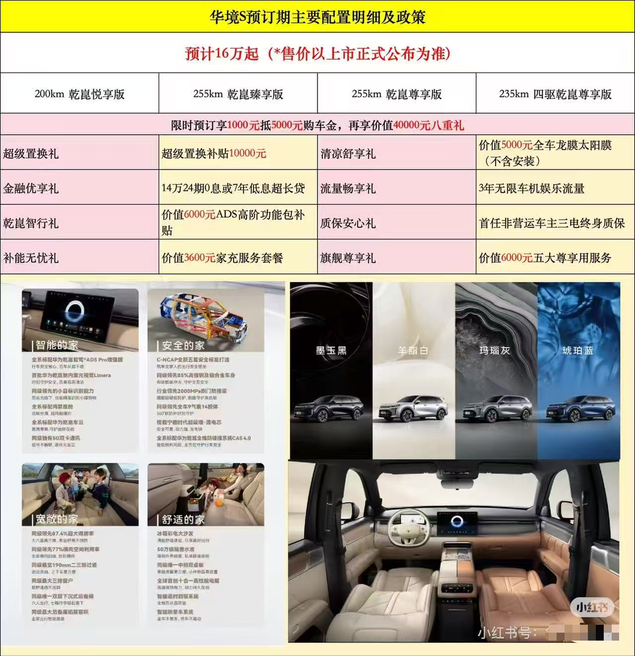 华境S定价遭内部曝光,16万起搭载华为乾崑“三件套”