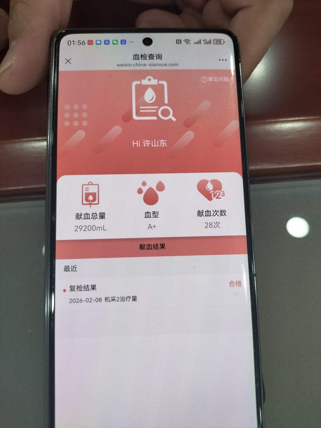 许山东献血获表彰