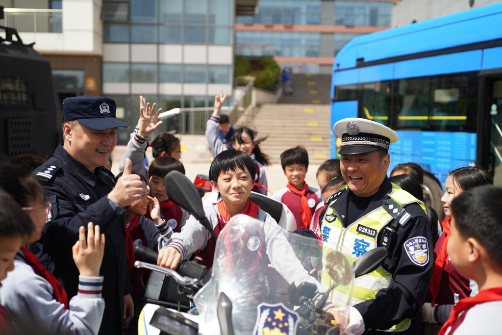 活动最后,民警组织大家与警车、铁骑合影留念,定格下难忘又珍贵的瞬间。整个体验过程中,孩子们看得目不转睛、参与热情高涨,让孩子们在轻松愉悦的氛围中既掌握了安全知识,又树立了感恩信念。