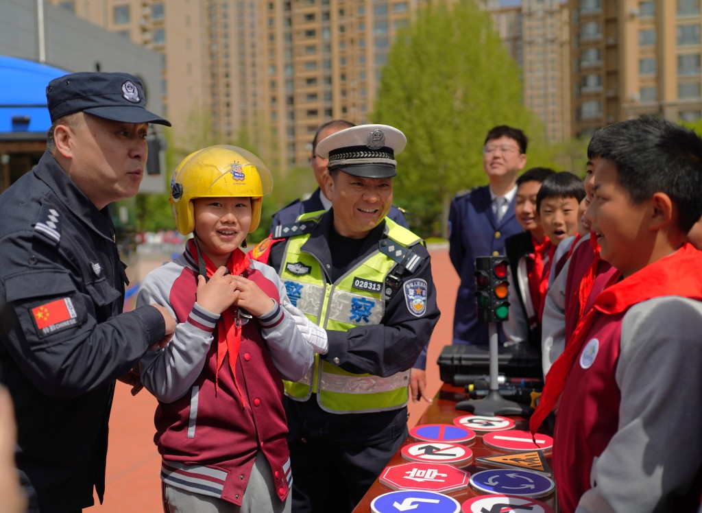 活动伊始,交管民警王同善结合小学生的认知特点,在学校操场开展安全宣讲,为整场活动拉开序幕。他用通俗易懂的语言,结合孩子们日常出行的常见场景,生动讲解了安全过马路、规范乘坐电动车及公交巴士的核心知识,引导大家牢固树立“安全第一”的出行理念。