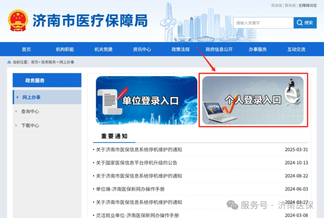 2.进入济南市医疗保障局官网,点击“网上办事—个人业务—基本医疗保险转移转出(或转入)申请”即可办理;