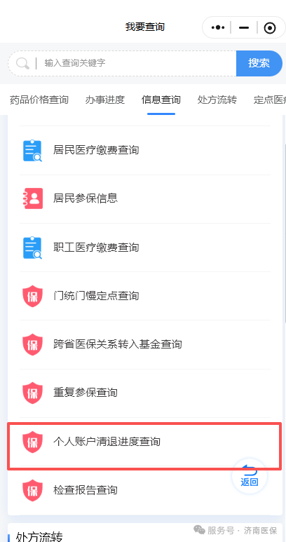 结清办理进度可通过“济南医保”小程序,选择“我要查询-个人账户清退进度查询”,查询账户金拨付情况。