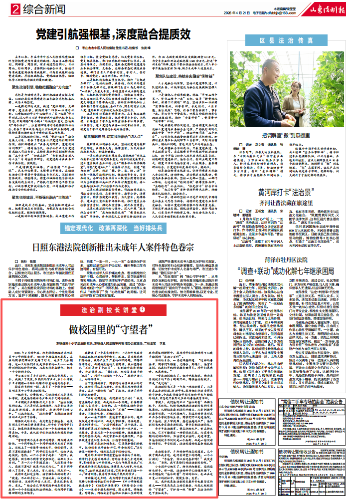 这,或许就是法治副校长最朴素也最坚定的意义——不是高高在上的宣教者,而是扎根校园的“守望者”,守护每一株“新蕾”在法治的阳光下茁壮成长。