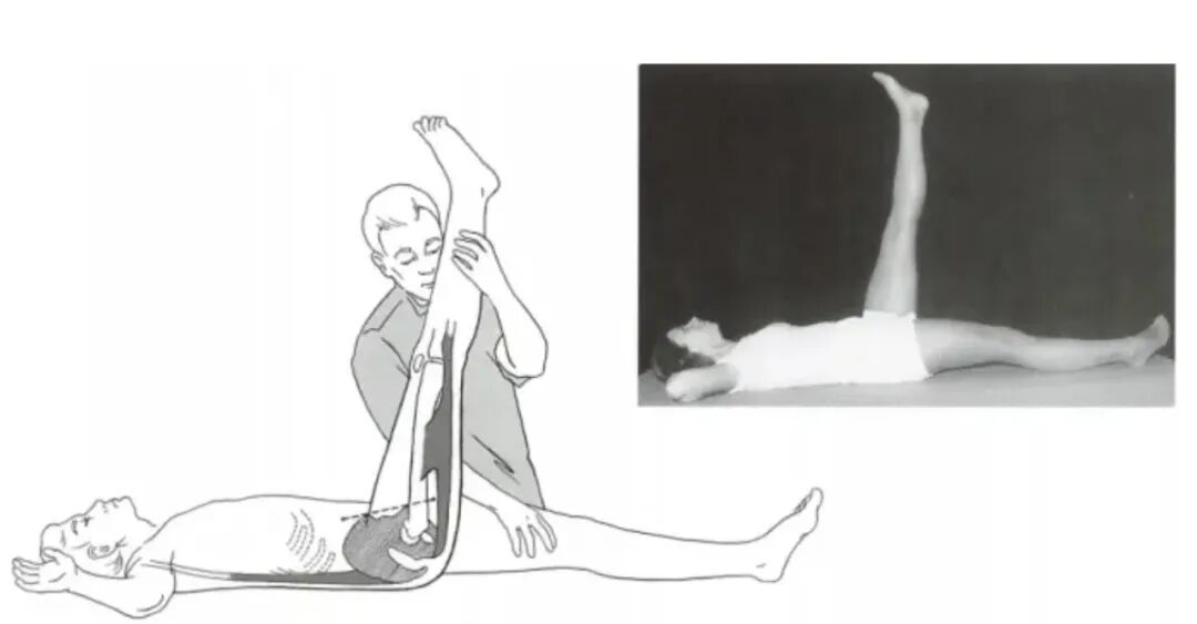 仰卧在平整的地面上,一侧下肢伸直贴地(若背部感觉不适,可将该侧下肢轻微屈膝),用毛巾或弹力带套在对侧下肢的足背处,双手拉住毛巾或弹力带,缓慢将该侧下肢向上抬起,直至感受到大腿后侧有明显的牵拉感,保持20秒-1分钟/侧/次,完成2-3次。