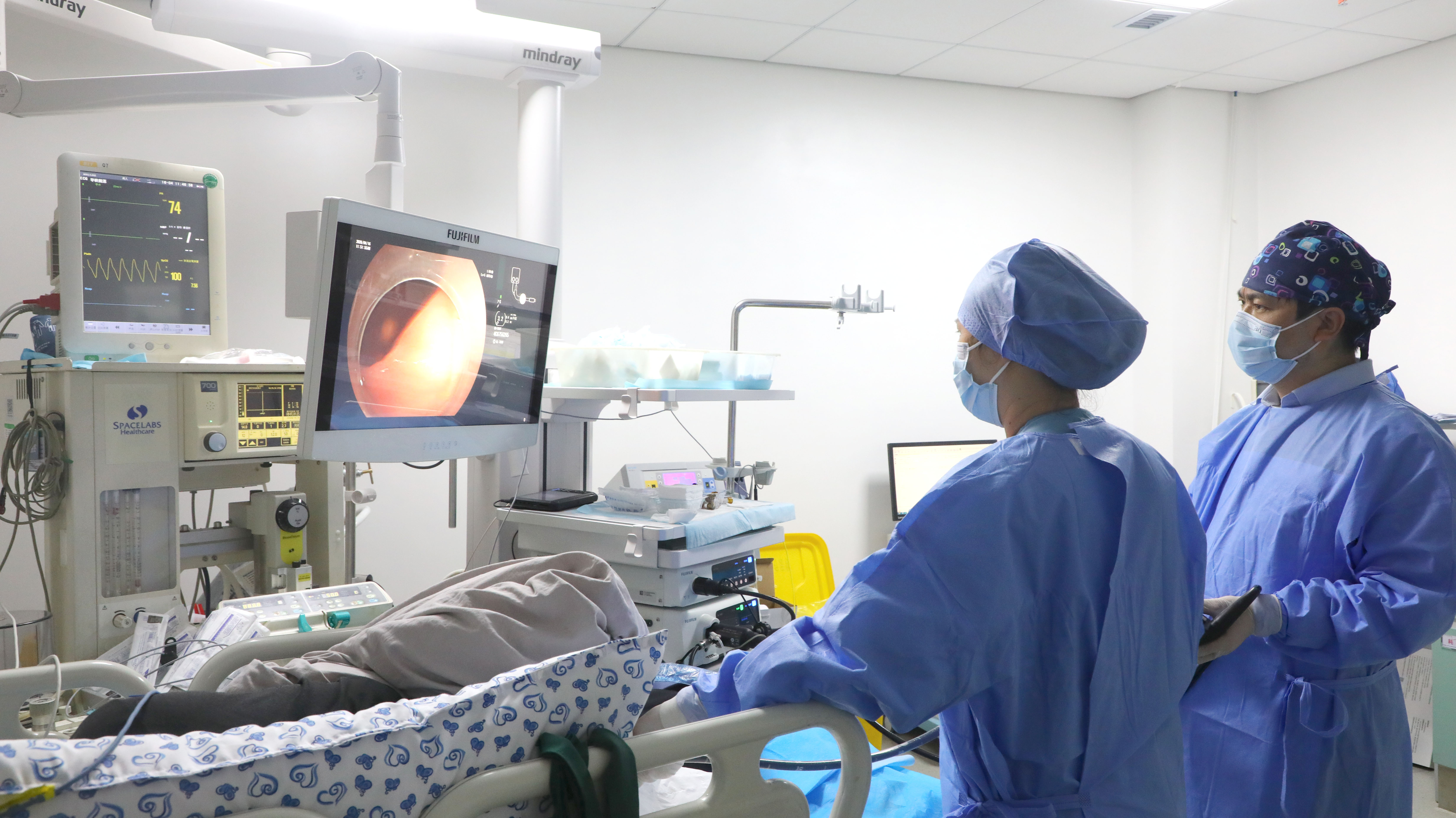 接到求救后,田芝雷第一时间综合评估患者病情,果断决定开通急诊绿色通道。当小李跨越700公里来到金乡县人民医院已是凌晨,田芝雷来不及休息,立刻联合麻醉科团队,在内镜中心绿色通道为患者实施内镜下微创治疗,精准找到出血憩室并成功止血,让小李转危为安。