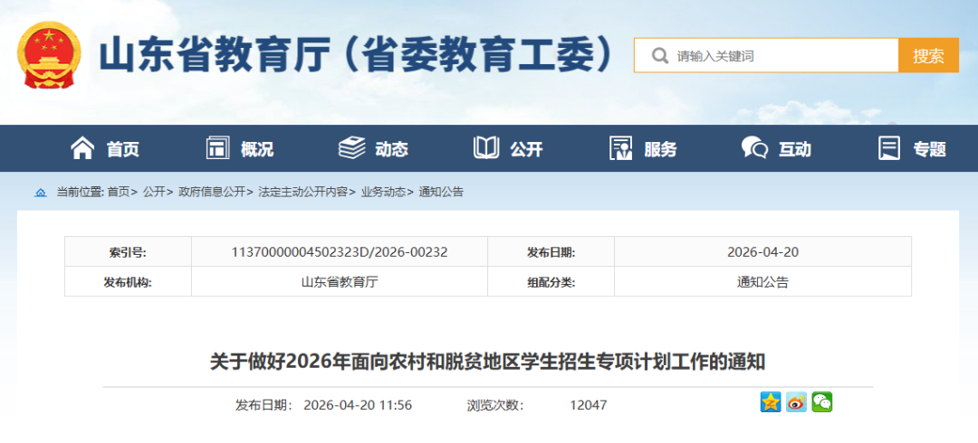 3500名!山东面向农村和脱贫地区学生招生专项计划公布