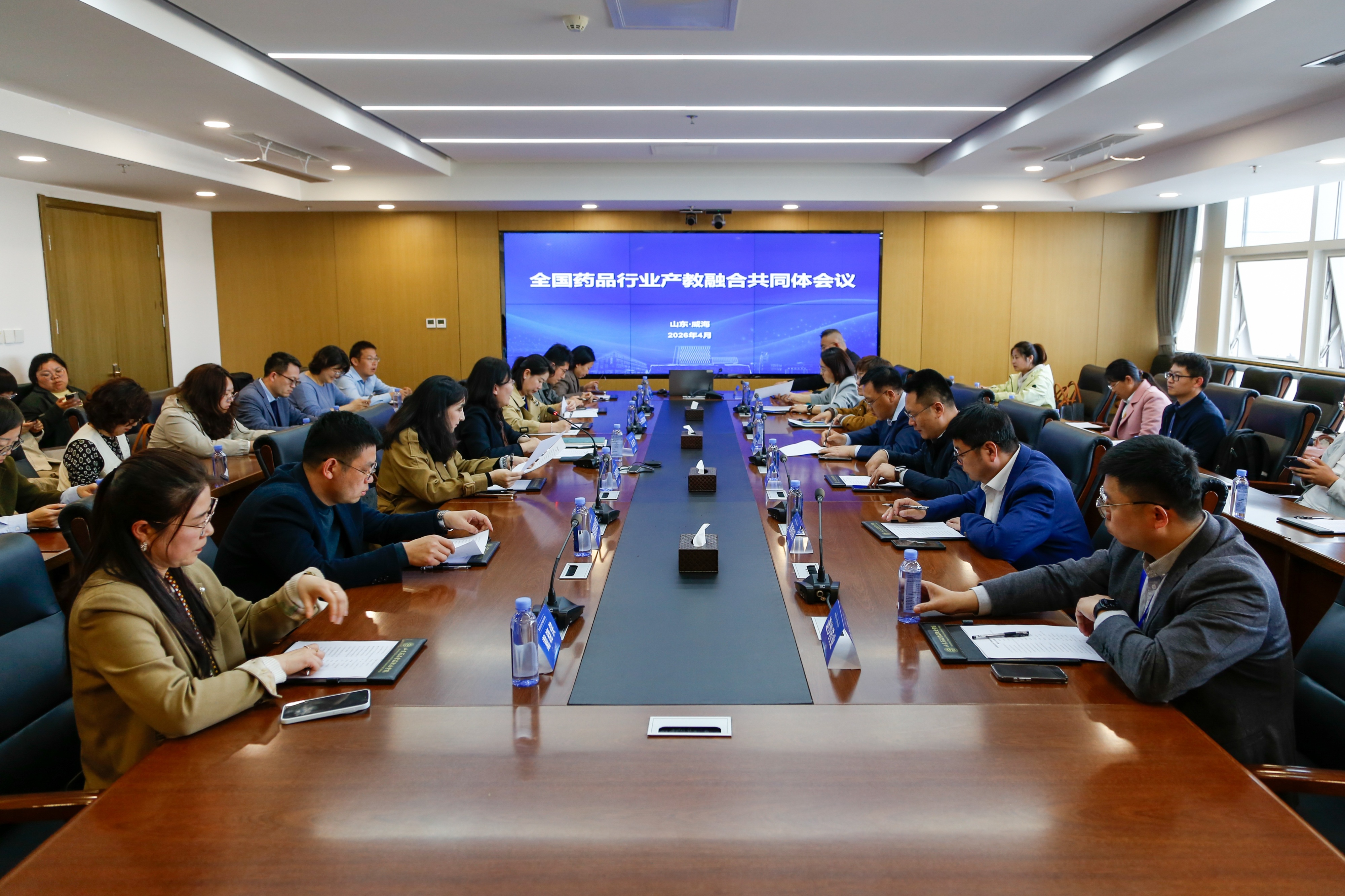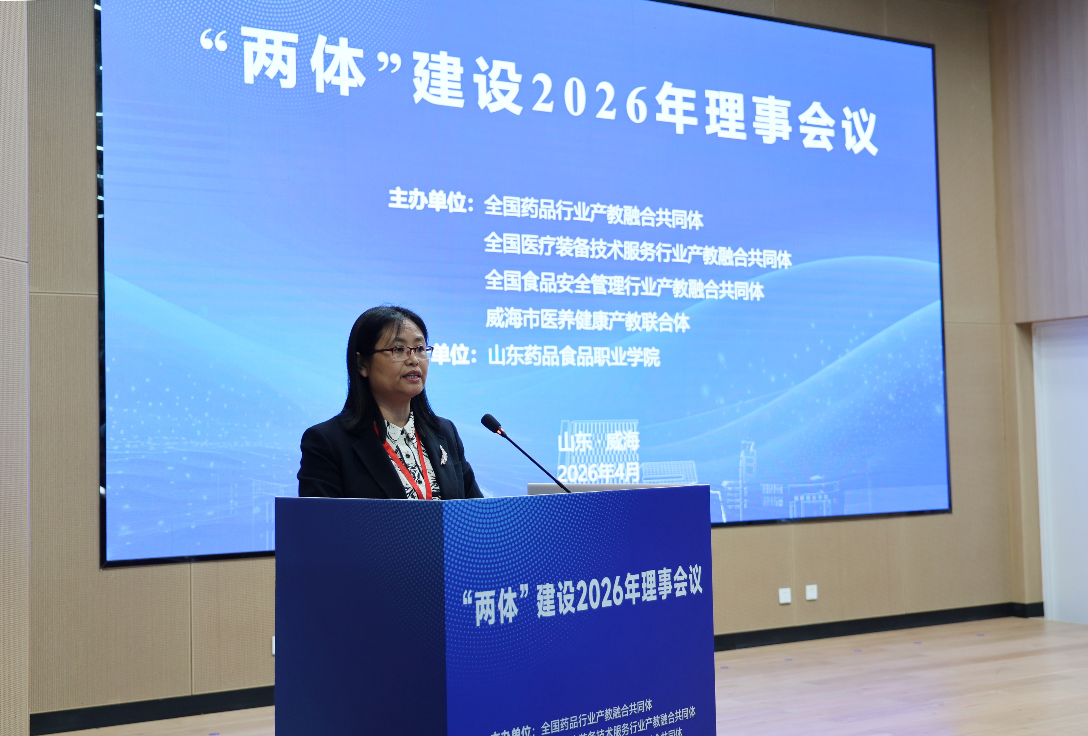 4月17日,全国药品行业产教融合共同体、全国医疗装备技术服务行业产教融合共同体、全国食品安全管理行业产教融合共同体及威海市医养健康产教联合体(简称“两体”)2026年理事会议在山东药品食品职业学院举行。来自政府、行业企业、科研机构、职业院校、本科高校等各成员单位的代表齐聚威海,共商产教融合大计,共绘协同发展蓝图。