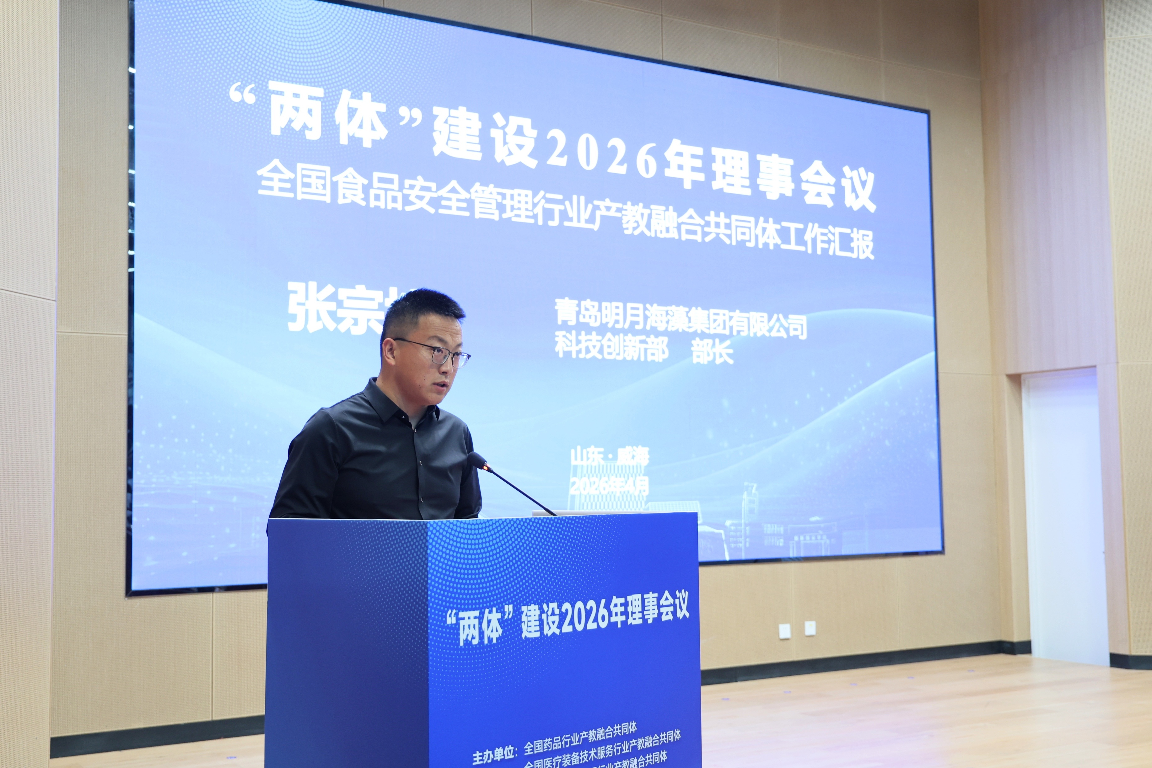 青岛明月海藻生物健康科技集团有限公司科技创新部部长张宗培作全国食品安全管理行业产教融合共同体2025年度工作汇报