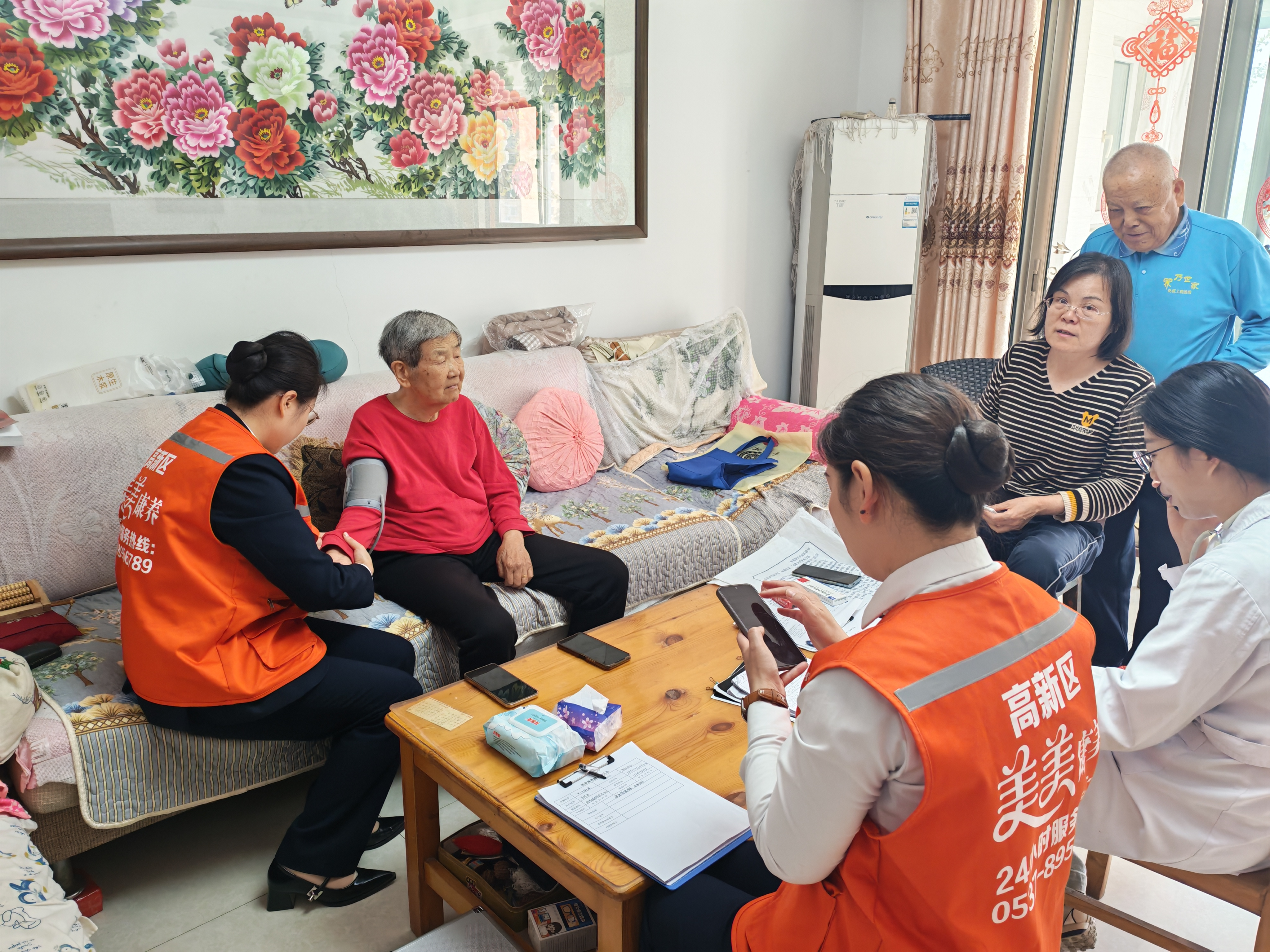 活动中,社区网格员与美美高新工作人员、济宁第一人民医院东院区李医师组成服务小队,敲开了居民的家门。医护人员拿出便携式血压计,为居民仔细测量血压,一边查看数据,一边拉着家常式询问近期的身体状况、饮食作息和用药情况,一句句叮嘱里满是关怀;第一人民医院东院区的李医师则同步为居民讲解慢性病管理、日常保健知识,传递科学的健康饮食理念。此次上门服务,不仅解决了行动不便居民的就医难题,也让居民在家门口感受到社区的温暖关怀。