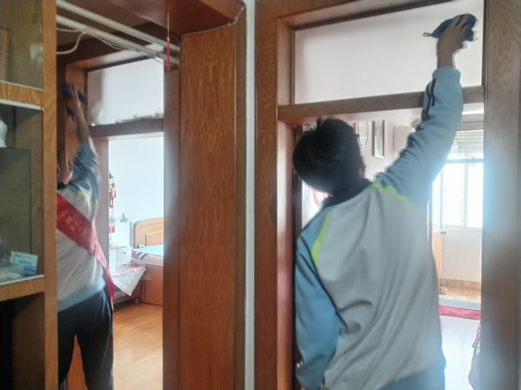 活动开始,志愿者们分组走进老人家中,帮助更换老旧窗帘、清理油烟机、打扫卫生、整理床铺。这些看似日常的小事,对于独居、行动不便的老人来说,却是生活中的“大难题”。