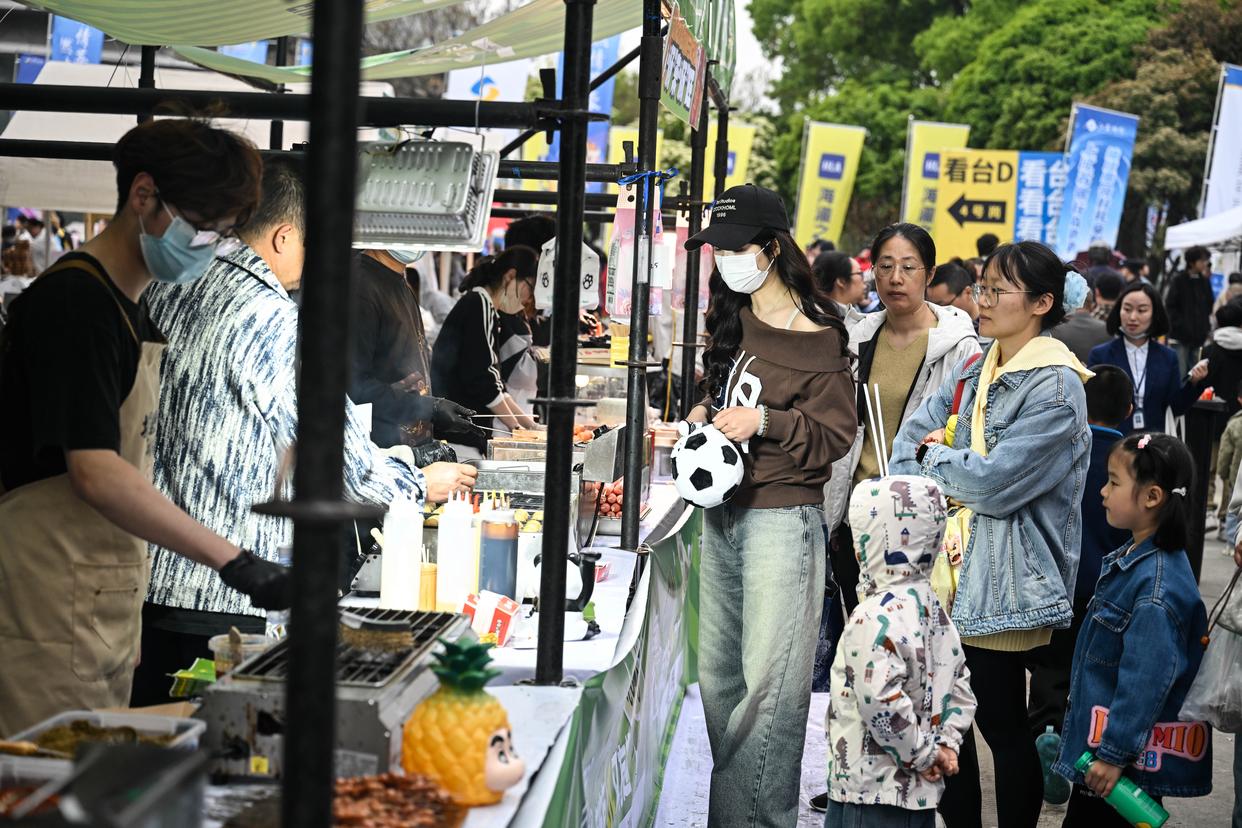 观众在常州奥体中心的“苏超”市集上休闲消费。