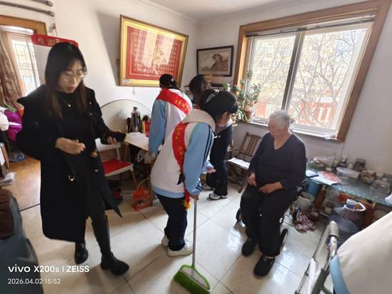 独居老人作为社区重点关爱群体,大多行动不便,平日里缺少家人陪伴,容易产生孤独感。基于这样的实际情况,学生们带着满满的关怀走进独居老人家中,耐心倾听老人讲述日常生活、过往经历与内心想法,用亲切的话语拉近与老人的距离,让冷清的屋子瞬间充满欢声笑语。针对老人家中卫生状况不佳、日常打扫吃力的问题,学生们主动拿起工具,分工协作,扫地拖地、擦拭桌椅、清理杂物,不放过每一个卫生死角,将老人的居所打扫得干净整洁。看着焕然一新的家,王阿姨脸上露出了欣慰的笑容,连连向学生们道谢。