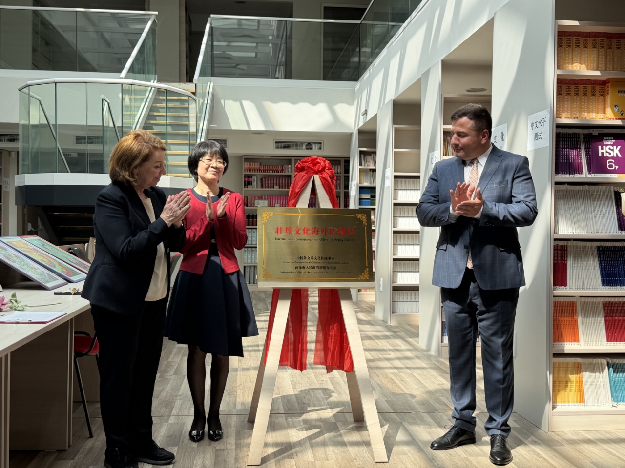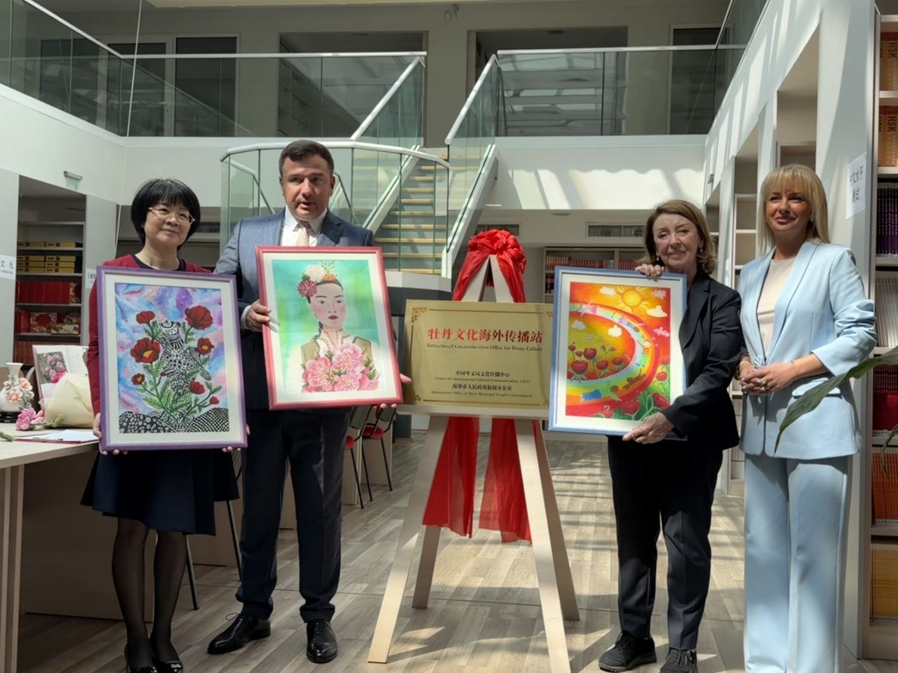 当地时间4月18日,由山东菏泽市牡丹区承办的“牡丹花开·菏泽有请”主题活动走进保加利亚索非亚孔子学院,作为该院庆祝“国际中文日”系列活动之一进行展示,活动现场为“牡丹文化海外传播站”揭牌。