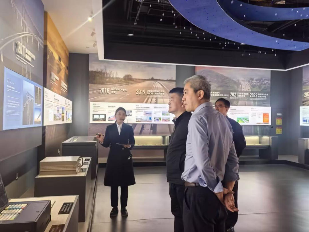 座谈结束后,调研团前往山东高速智能产业园,实地参观企业展厅,深入了解企业发展历程、核心技术成果及未来产业布局。随后,调研团专程看望了在岗实习就业的学生代表。王诚与学生面对面交流,细致询问工作内容、岗位适应情况及生活保障,勉励大家珍惜平台、潜心钻研、练就过硬本领,努力成长为德技并修的新时代工匠人才。