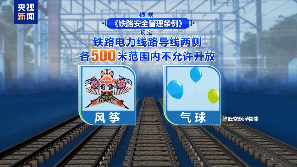 为做好源头防控,每到春季,铁路部门组织人员对铁路两侧塑料大棚、防尘网进行检查加固,对已经挂在接触网上的异物及时清理。同时提醒,根据《铁路安全管理条例》规定,铁路电力线路导线两侧各500米范围内不允许升放风筝、气球等低空飘浮物体,公众如发现铁路接触网有轻飘物,可及时联系铁路部门进行处置。