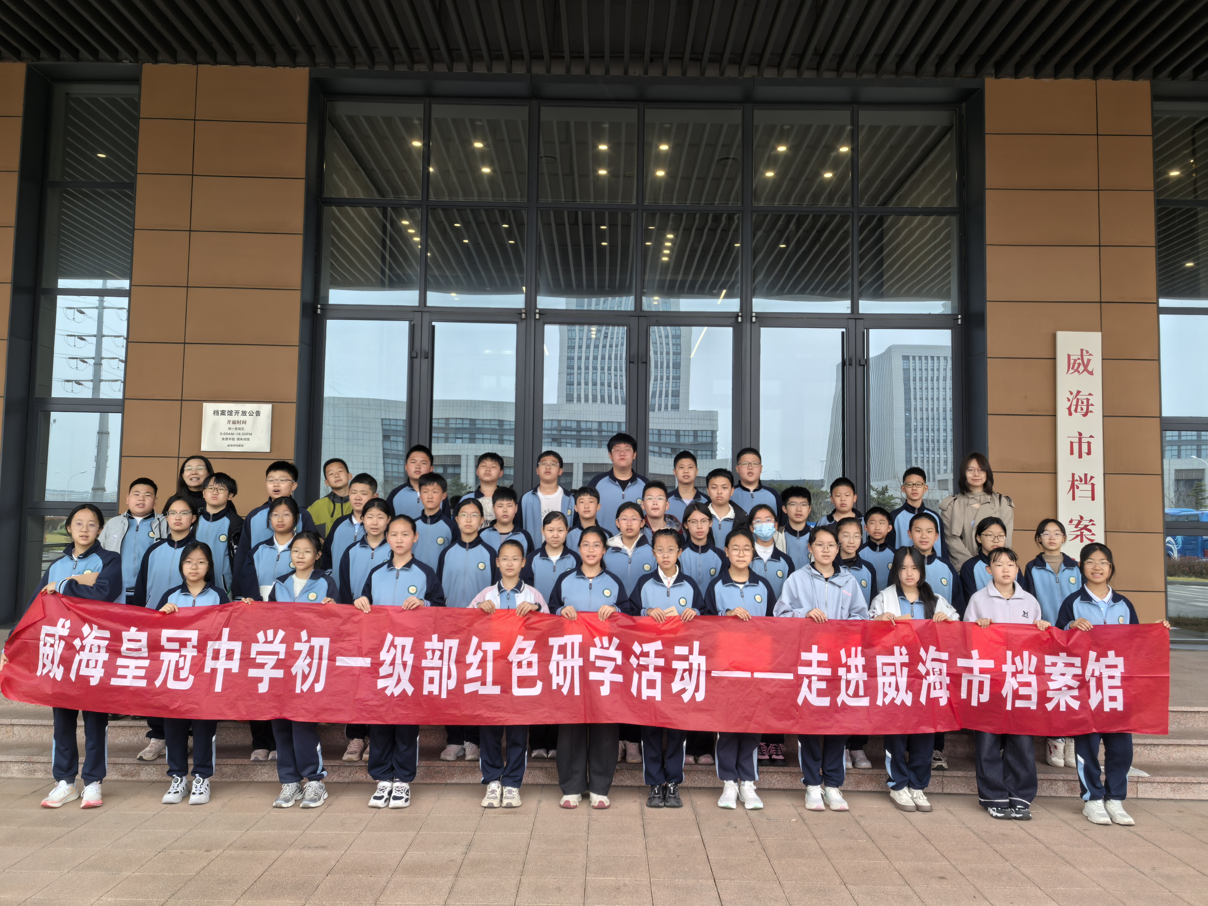 威海经开区皇冠中学学子走进威海市档案馆寻迹城市史