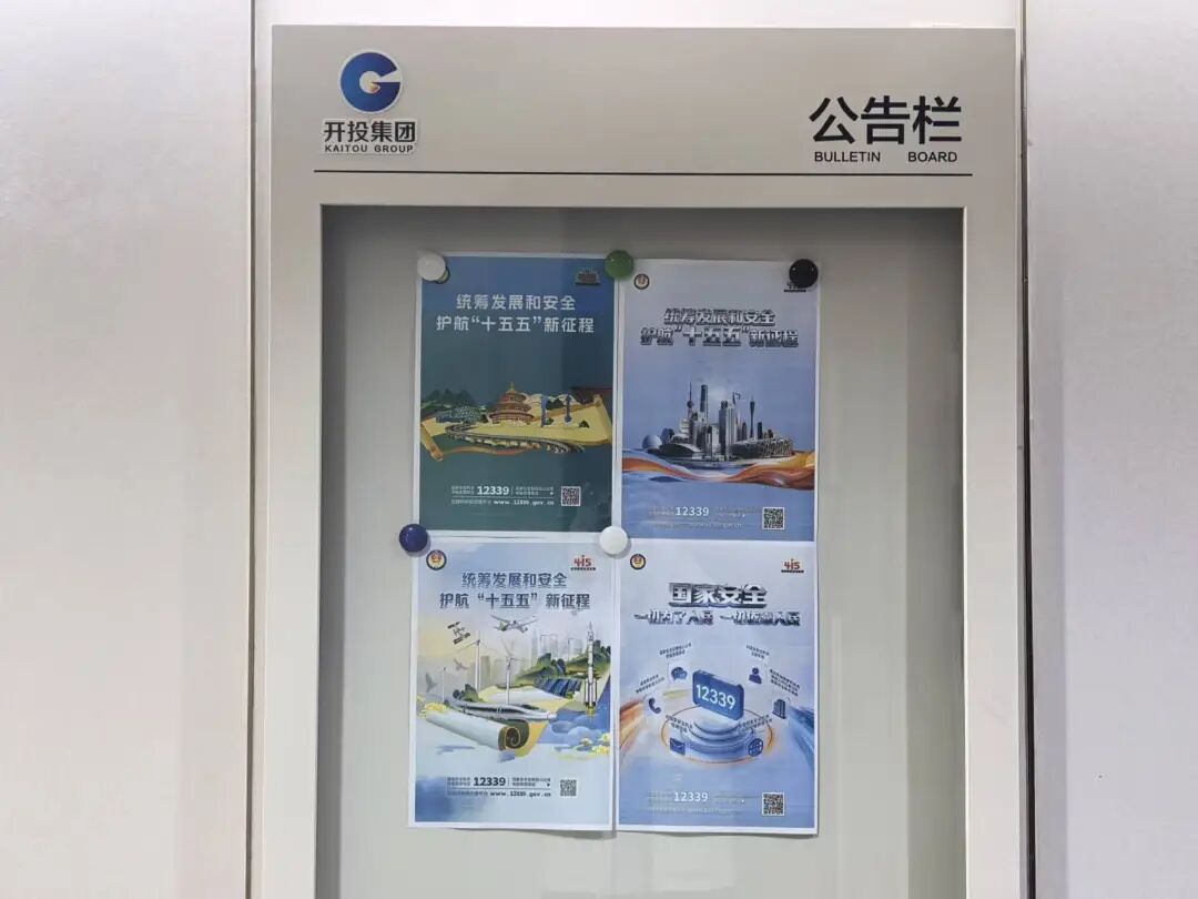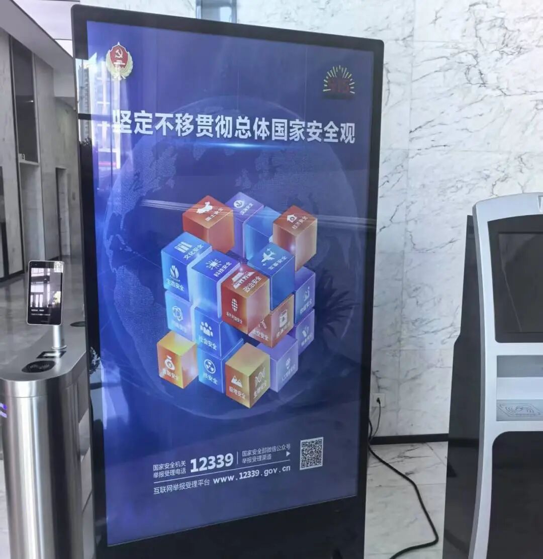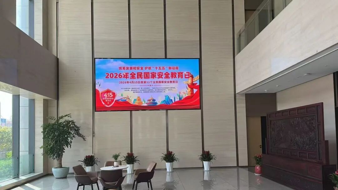 为让国家安全宣传融入日常、浸润人心,在经控、开投大厦等公共区域,利用电子屏、LED大屏等载体,滚动播放国家安全主题海报、宣传标语,将安全教育融入干部职工工作生活的每一个细节,让大家在潜移默化中学习安全知识、增强安全意识,着力营造“时时讲安全、处处守安全、人人护安全”的良好氛围。
