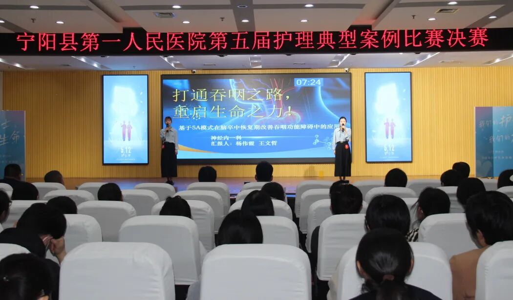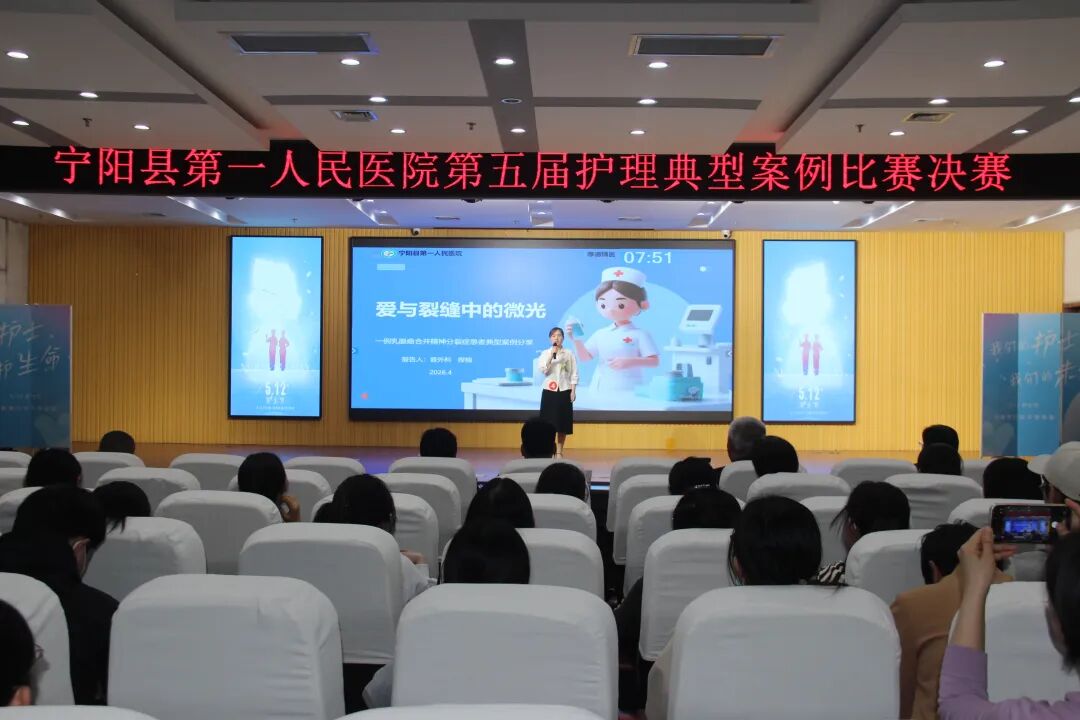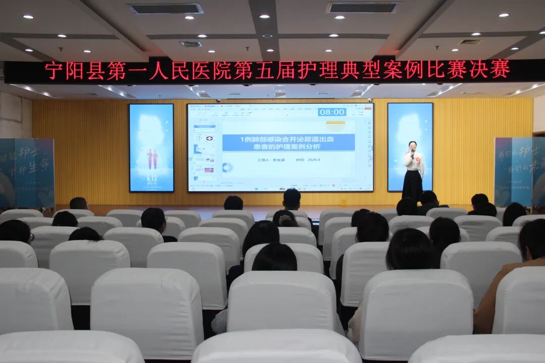 为庆祝第 115 个国际护士节,进一步提升护理团队专业能力与服务水平,促进临床护理经验交流共享,2026年4月 16 日下午,宁阳县一院在厚德楼二十楼会议室隆重举办第五届护理典型案例比赛决赛。院党委书记刘春,院党委副书记、院长王峰,院领导班子出席活动,全院科主任、护理人员约200人到场观摩。