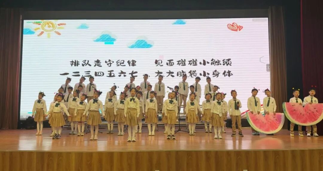 1班带来《上春山》,歌声婉转清新,如春风拂面,将春日的灵动与诗意唱进每个人心间。13班用稚嫩的嗓音、活泼的节奏演绎童真故事《蚂蚁和西瓜》,灵动可爱,尽显孩童本色。4班唱响《红星歌》,旋律铿锵有力,歌声坚定昂扬,让红色精神在童心中传递,照亮孩子们成长的道路。12班带来《少年有志》,用嘹亮歌声诉说少年担当,展现出新时代少年儿童志存高远、奋勇向前的精神风采。
