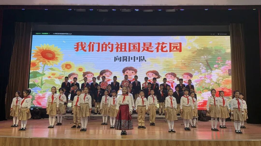 3班朝气蓬勃,孩子们如向阳花儿般绽放,用歌声唱响《祖国的花朵》,展现少年朝气与蓬勃生命力。16班《虫儿飞》温柔治愈,用温柔歌声描绘诗意童年,宁静而美好。红旗猎猎,初心如磐。11班《红旗飘飘》深情有力,以少年之声致敬红旗与祖国。9班《中国么么哒》活泼可爱,用最亲昵的方式表达对祖国的喜爱,童真满满,温情又治愈。