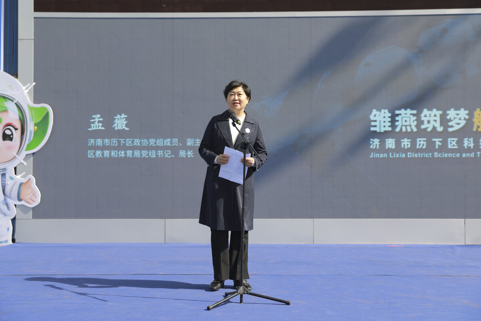 历下区政协党组成员、副主席,区教育和体育局党组书记、局长孟薇致欢迎词。她表示,历下教育紧扣教育、科技、人才三位一体战略,以“SAI”科技教育品牌为抓手,构建校家社协同育人新生态,以燕山小学为首的一批学校逐步形成了各具特色的科技教育育人样板。她寄语各学校以“新视野”谋划“大格局”,勉励历下少年以“大志向”拥抱“大时代”,希望全体教师以“大情怀”点燃“大梦想”。