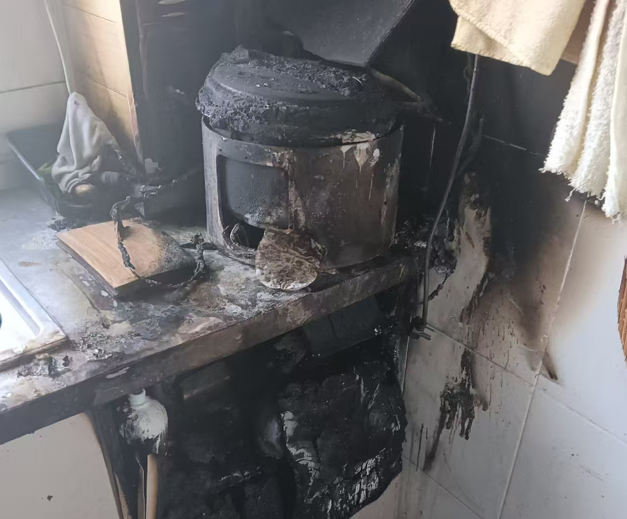 4月20日上午10点左右,淄博高新区四宝山街道时代社区时代名都小区内,邵大爷外出时疏忽未关闭电热锅,导致锅内食物干烧起火,浓烟弥漫。危急时刻,淄博永安物业巡逻人员通过公共区域烟感报警系统迅速锁定火源,三分钟内携灭火器赶至现场。物业人员果断切断电源,扑灭火苗,并开窗通风排烟,有效避免了火势蔓延。
