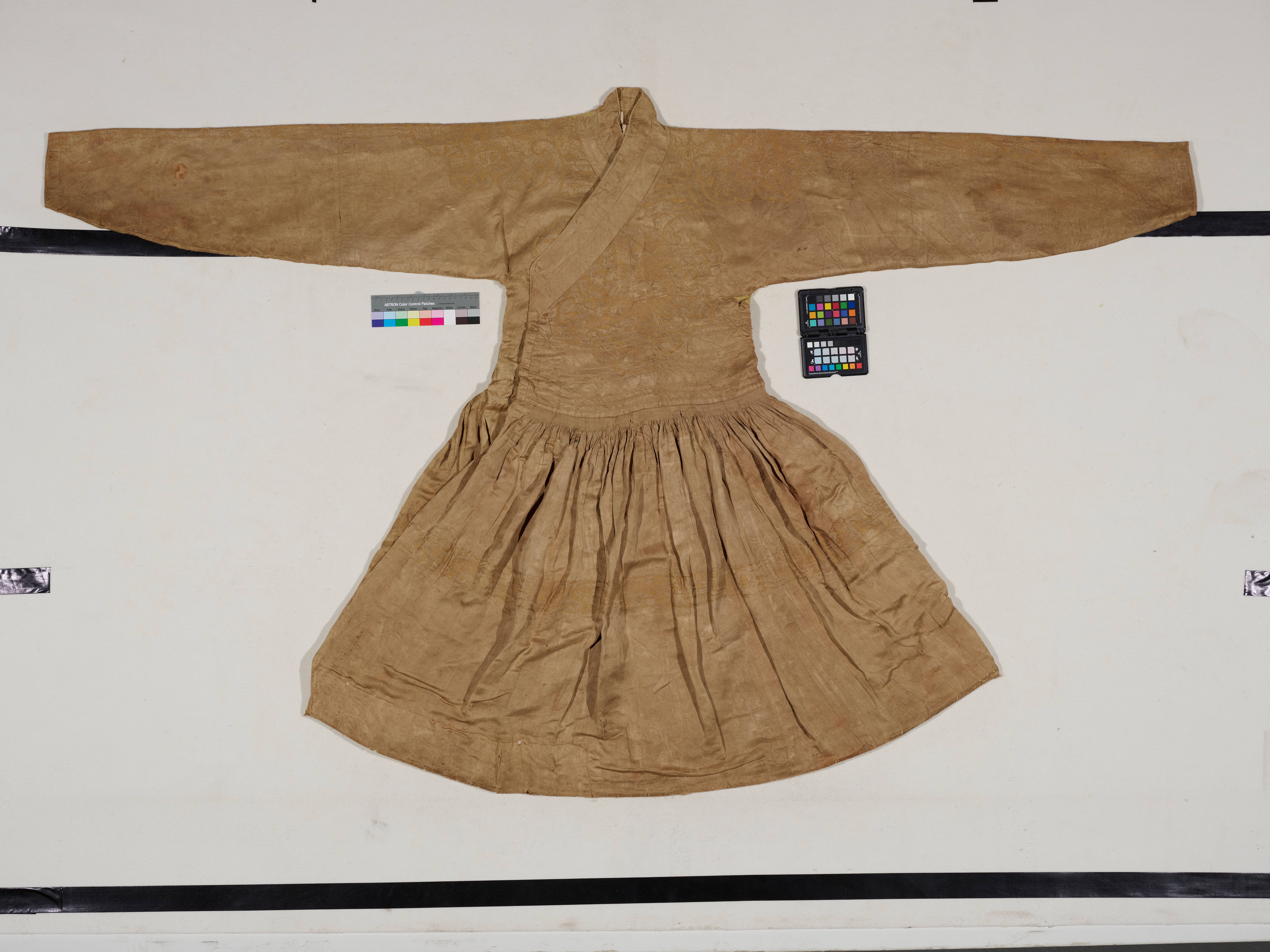 展览分为“承运藩屏”“安荣养尊”“鲁府奎壁”三大板块,展品涵盖冕冠服饰、生活器用、琴棋书画等文物藏品685件。其中现存唯一的明代亲王九旒冕、九缝皮弁及相关纺织品,再现明初亲王礼冠与织造技艺;戗金云龙纹漆箱,代表了中国传统漆艺的巅峰技艺。唐代“天风海涛”琴、宋高宗题跋画作、元代古籍善本,共同勾勒出中华文明绵延千载的传承画卷。