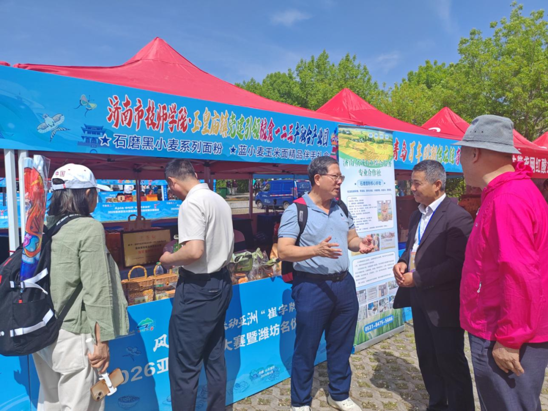 4月18日至19日,以“风筝之约・味动亚洲”为主题的第四届亚洲烹饪大赛在山东潍坊盛大启幕。由济南市技师学院派驻商河县玉皇庙镇外派干部李延辉牵头、文化与旅游系孙环慧团队研发的“蓝小麦系列烘焙伴手礼”惊艳亮相,凭借绿色健康的食材理念与匠心巧思的制作工艺,赢得了国内外嘉宾的一致好评。“济南市技师学院驻村第一书记(优选)匠心馆”被授予本次大赛“指定食材供应商”荣誉称号,省烹饪协会会长张雷、党支部书记徐长麟亲自授牌,为学校服务乡村振兴、赋能地方产业发展写下了浓墨重彩的一笔。