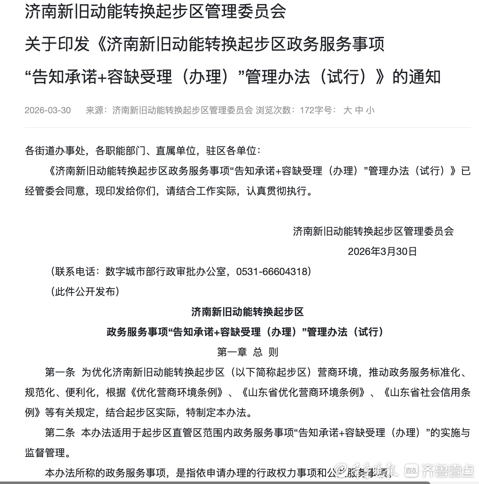 济南起步区推进“告知承诺+容缺受理(办理)”改革落地见效