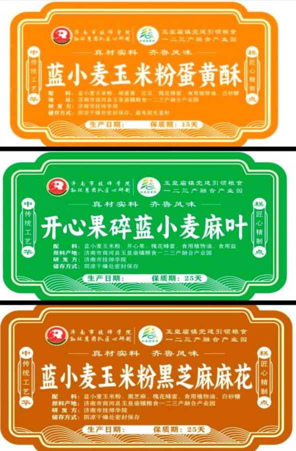 本次亮相的系列产品,以玉皇庙镇党建引领粮食一二三产业融合产业园的优质农产品为核心原料,依托济南市技师学院面点专业的技术力量,实现了“农校对接、产教融合”的深度实践。系列产品共包含蓝小麦玉米粉蛋黄酥(蛋黄豆沙馅)、开心果碎蓝小麦麻叶、玉米粉黑芝麻麻花三大品类,原料均产自产业园绿色生态种植基地,选用无农药残留、无添加的蓝小麦、黑小麦、玉米面,搭配石磨低温研磨工艺,最大限度保留了食材的天然营养与原香风味,既兼顾了健康属性与美味口感,又承载着“从田间到餐桌”的乡村振兴温度。