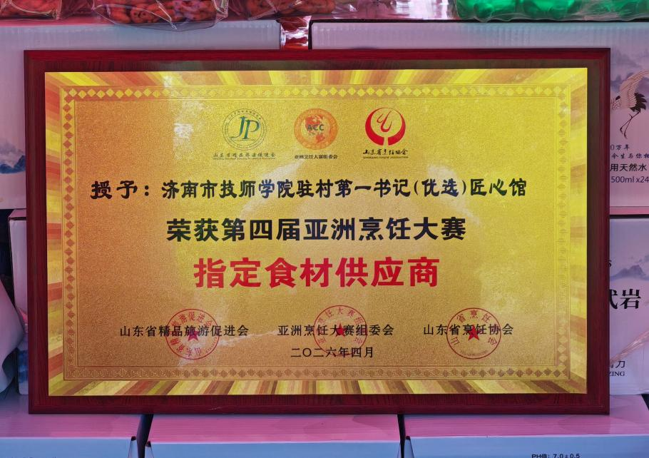 4月18日至19日,以“风筝之约・味动亚洲”为主题的第四届亚洲烹饪大赛在山东潍坊盛大启幕。由济南市技师学院派驻商河县玉皇庙镇外派干部李延辉牵头、文化与旅游系孙环慧团队研发的“蓝小麦系列烘焙伴手礼”惊艳亮相,凭借绿色健康的食材理念与匠心巧思的制作工艺,赢得了国内外嘉宾的一致好评。“济南市技师学院驻村第一书记(优选)匠心馆”被授予本次大赛“指定食材供应商”荣誉称号,省烹饪协会会长张雷、党支部书记徐长麟亲自授牌,为济南市技师学院服务乡村振兴、赋能地方产业发展写下了浓墨重彩的一笔。