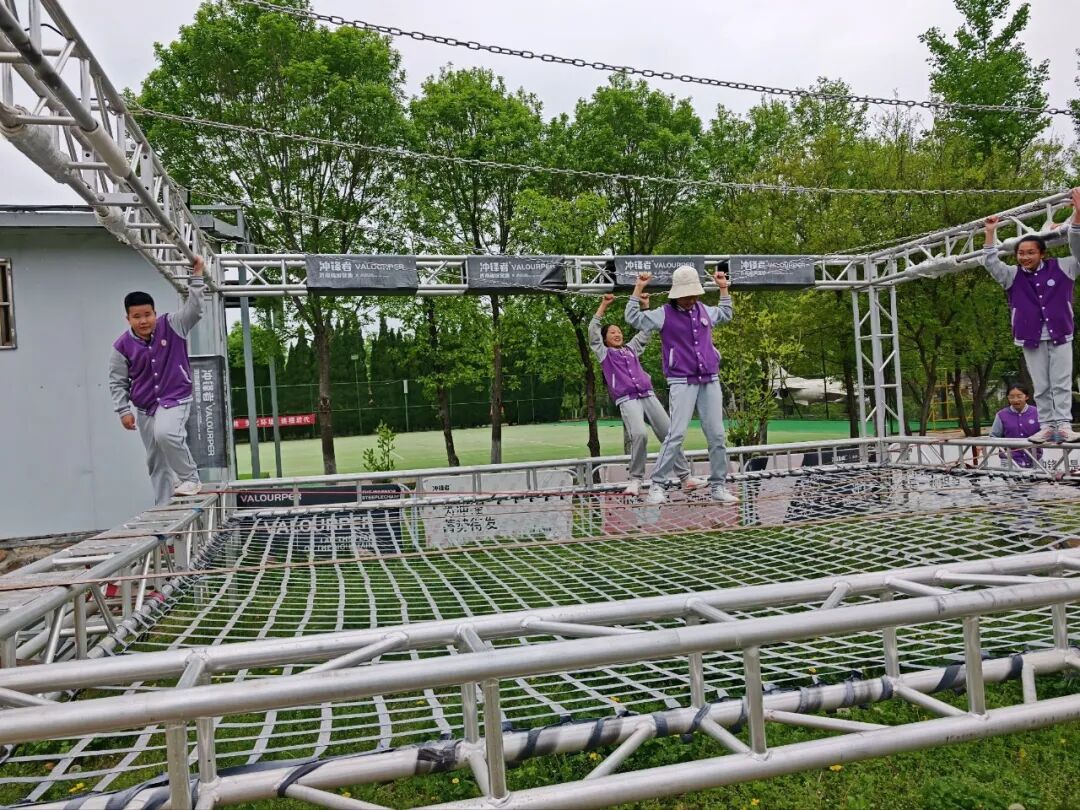 之后,学生们挑战“勇敢者之路”,钢丝桥、软梯桥、独木桥等关卡考验着大家的勇气。起初不少学生犹豫不决,在小队成员的鼓励下,大家陆续迈出脚步。五年级5班李婉月说:“走到中间时桥晃得厉害,我差点掉下去,但后面的同学喊‘别往下看,看终点!’我就一口气冲了过去。”大家在挑战中战胜胆怯,收获了勇气。