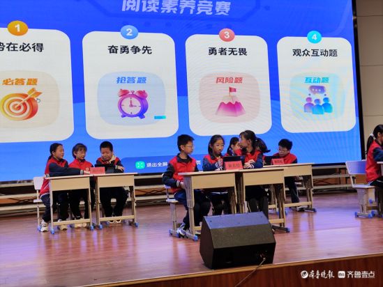 本次竞赛面向一、五年级学生,一年级围绕《读读童谣和儿歌》、五年级聚焦《呼兰河传》展开比拼。比赛设置必答、抢答、风险题及互动环节,小选手们沉着作答、踊跃挑战,台下同学积极参与,现场书香氛围浓厚。