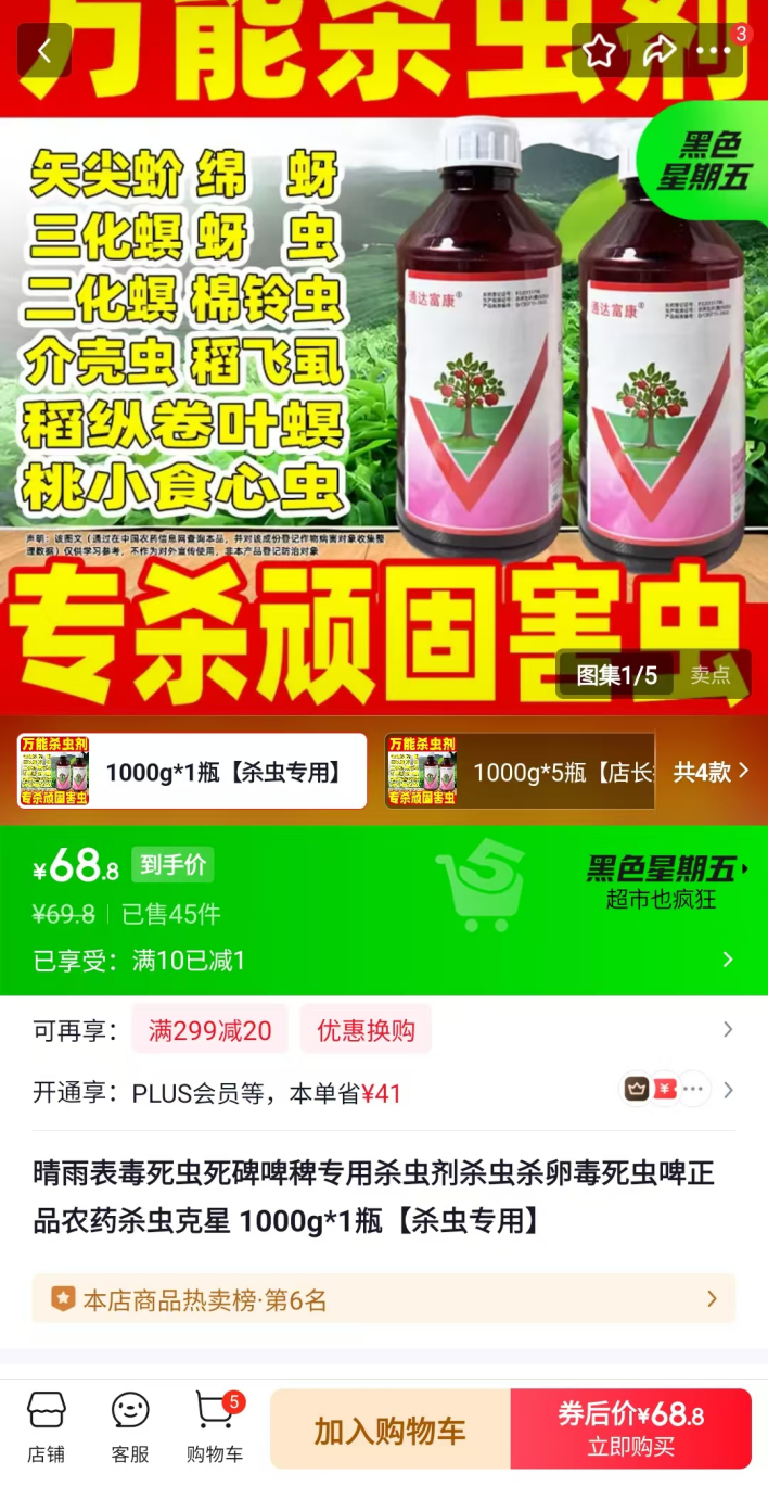 虽然《农药经营许可管理办法》第二十一条明确规定,限制使用农药不得利用互联网经营,但毒死蜱在线上很容易就能买到。