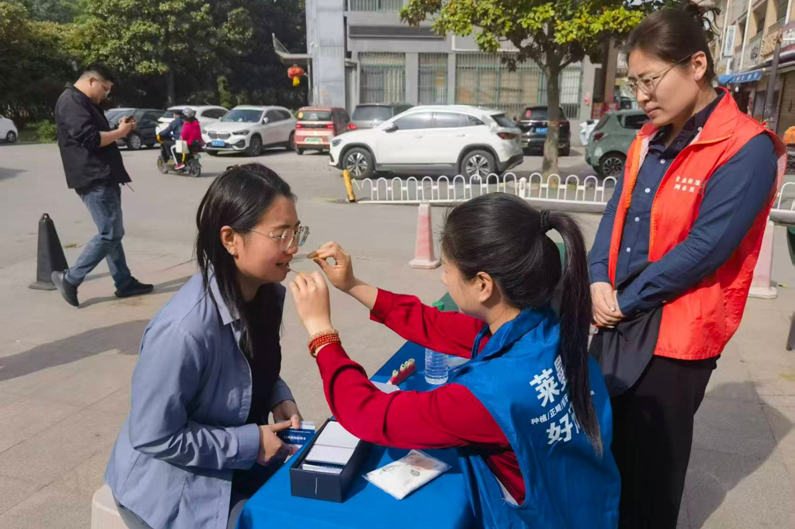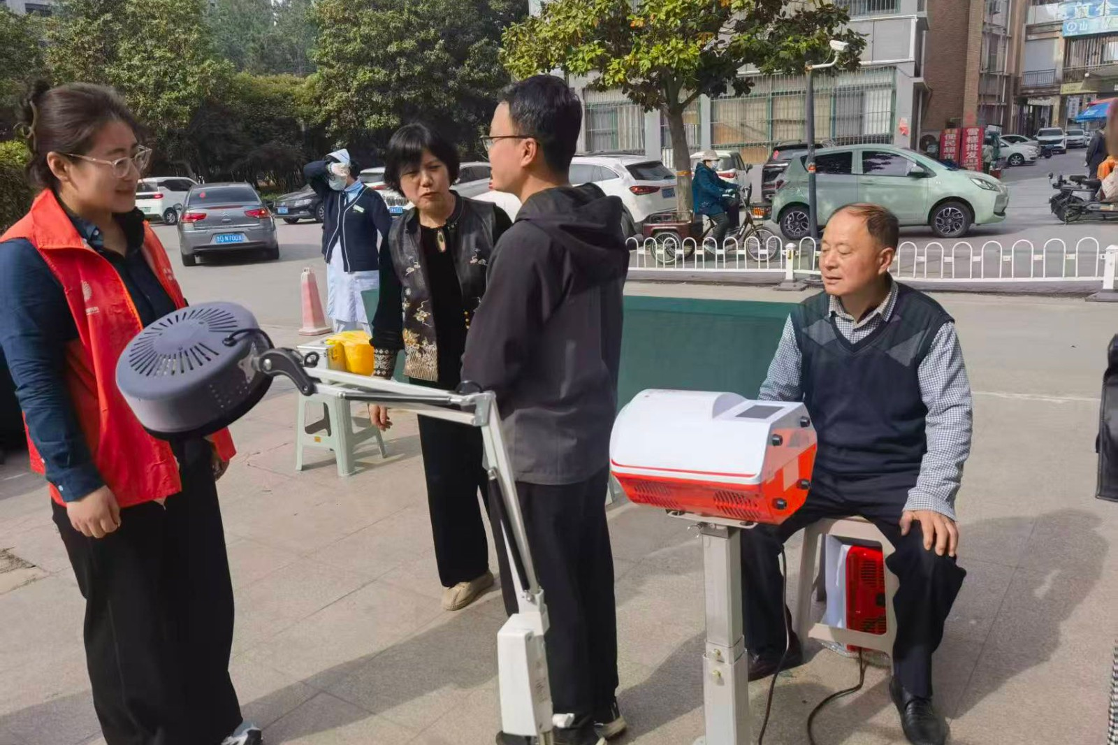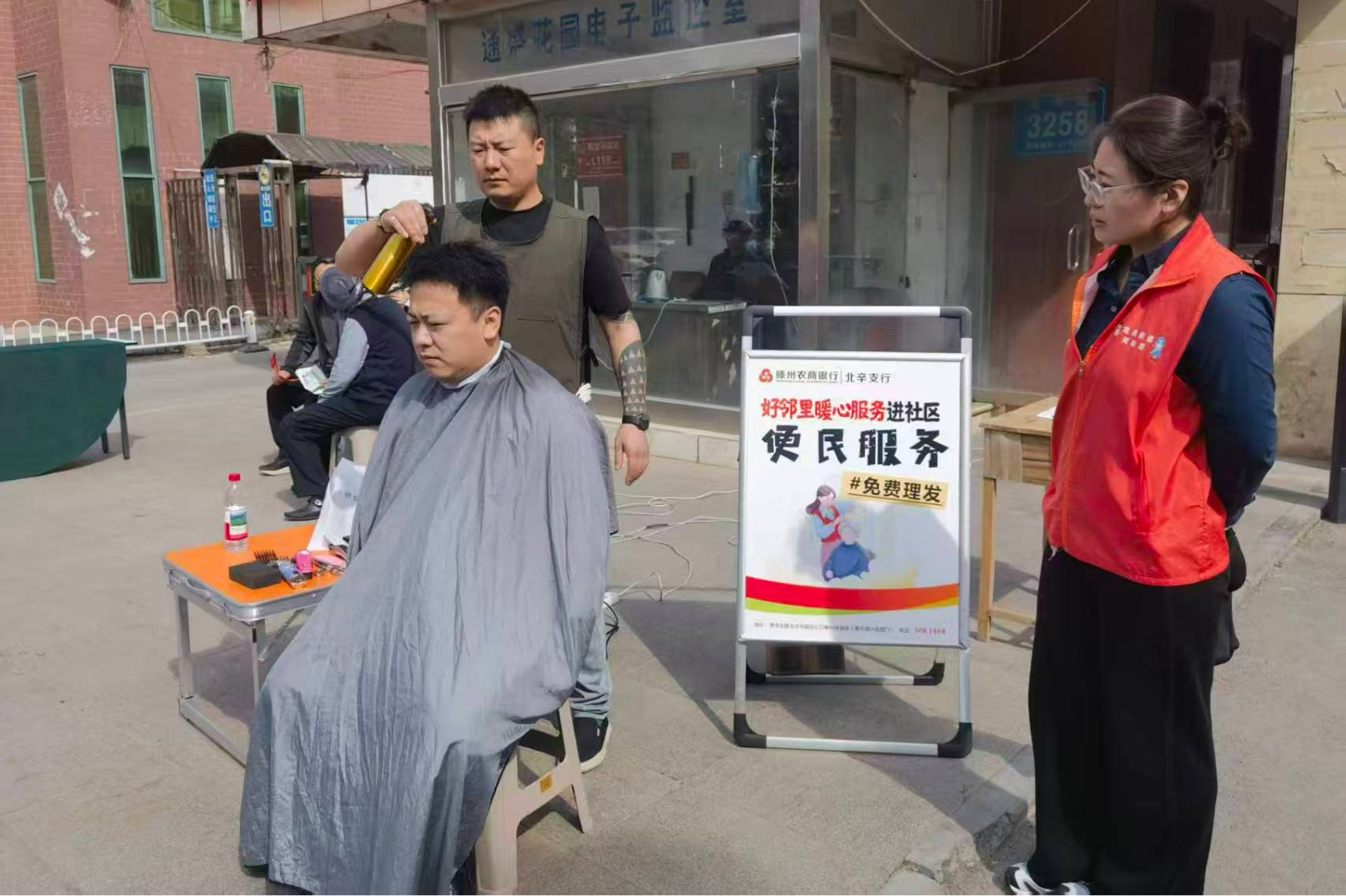 活动现场温馨而有序。健康义诊区,医务人员为居民提供免费口腔检查、血压测量等服务,针对各类健康问题细致答疑,贴心的服务赢得大家连连称赞。义剪服务区,志愿者技艺娴熟、细致入微,手起剪落,推子轻响,伴随着细碎的“咔嚓”声,原本凌乱的发丝渐渐整齐有型。家电维修服务区同样排起了长队,居民们带来家中损坏的小家电,维修师傅凭借娴熟的技术让它们“重获新生”。蒙眼原地踏步游戏区趣味十足,参与者戴好眼罩、凝神静气,在口令指引下保持节奏原地踏步,努力稳住身形、不越界线。