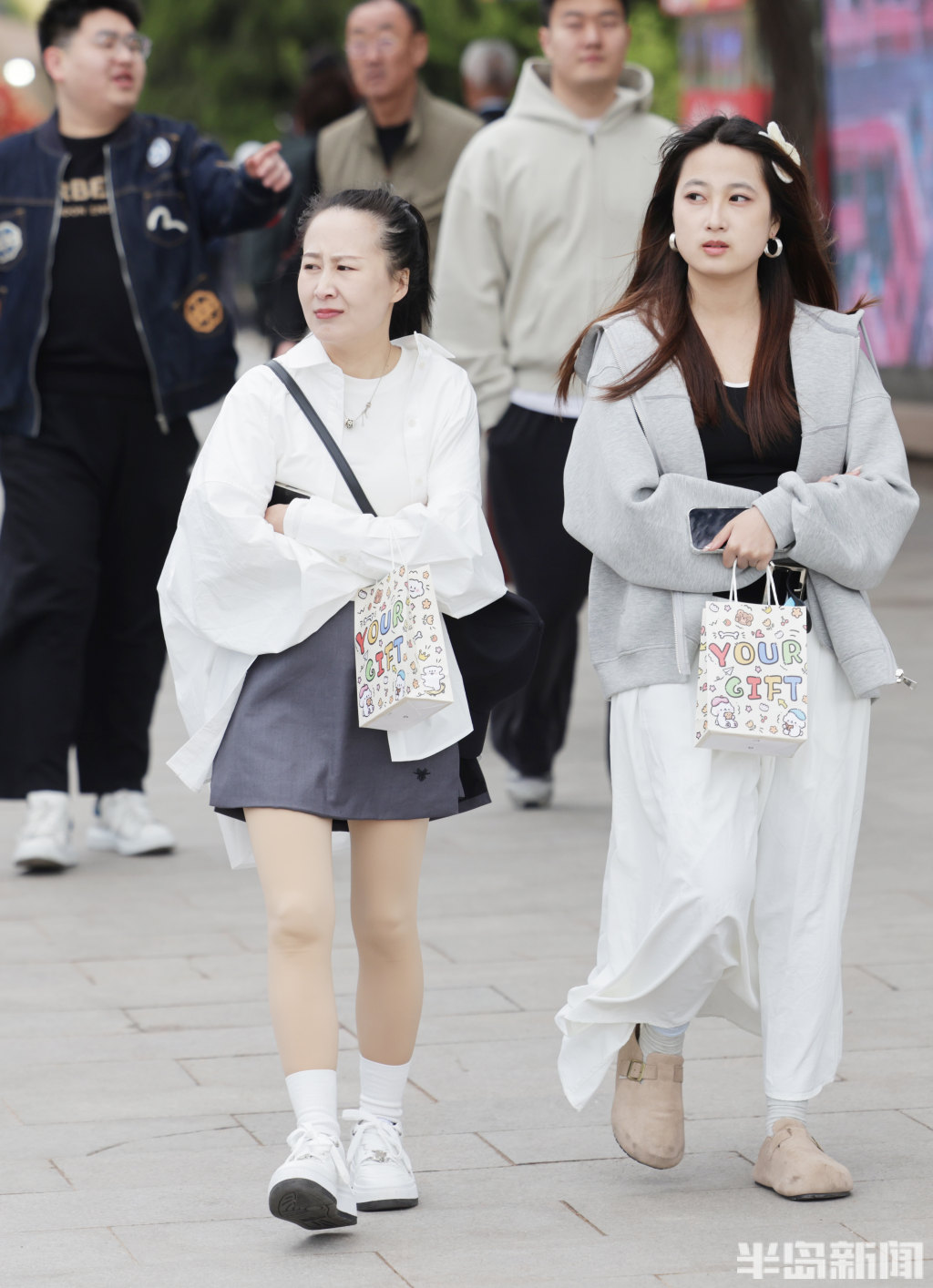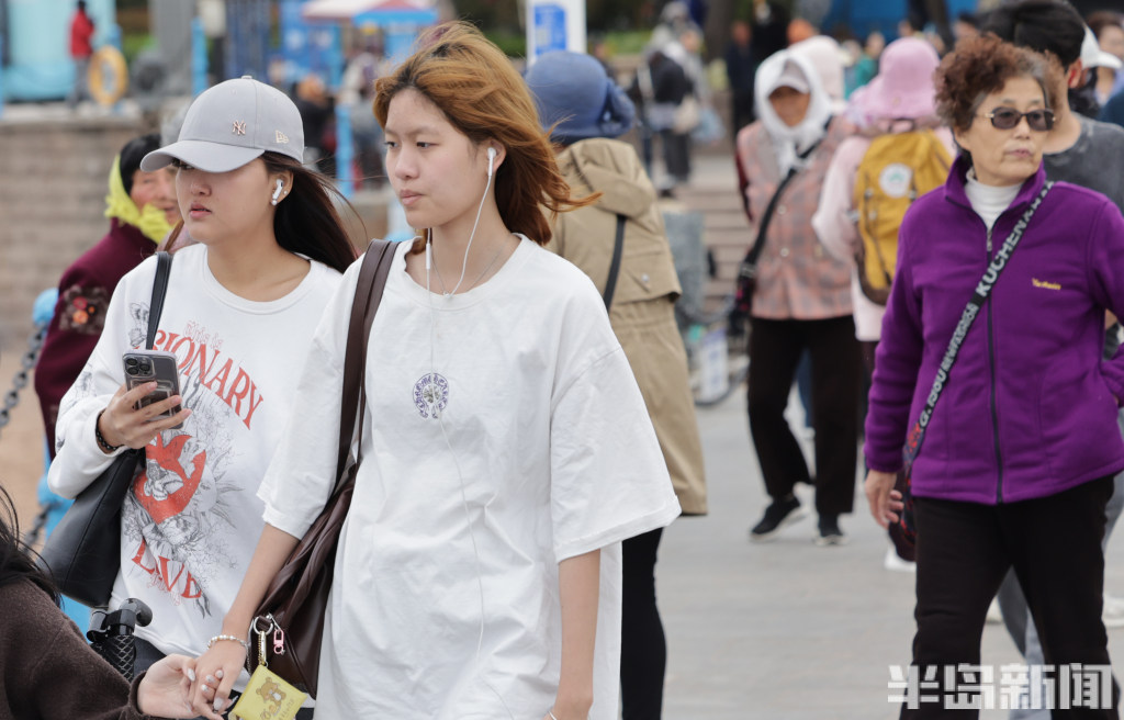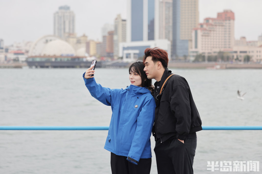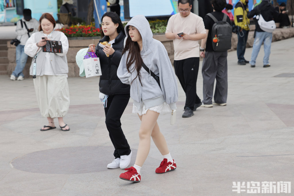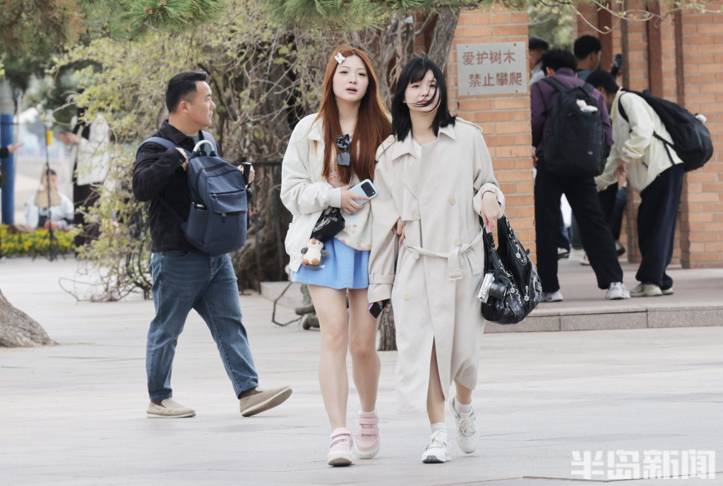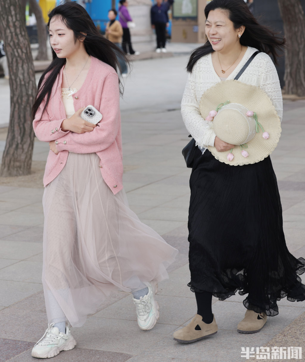 4月21日,岛城沿海一线风力强劲,不少观光游客直呼“吃不消”。不少游客原本身着轻薄裙子,满心期待在海边拍出春日美照,却被凛冽的海风吹得瑟瑟发抖,瞬间打乱了拍照计划。街头行人的穿搭也透着“换季的小尴尬”——不少人下身是短裙,上身却裹着厚外套,春装与冬装混搭,尽显“乱穿衣”的春日特色。(半岛全媒体记者何毅)