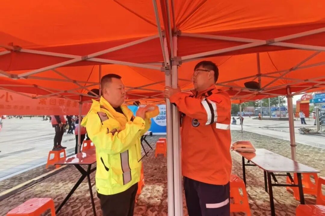 由海豹、烈焰应急志愿者及和济医院医护志愿者组成的机动应急小组,是园区的“安全守护者”。他们携带急救物资巡逻备勤,排查隐患、处理突发状况。开幕当日,他们快速响应,为服务站安装提供加固保障,为游客提供应急帮助,用专业与速度筑牢了志愿服务的“安全防火墙”。