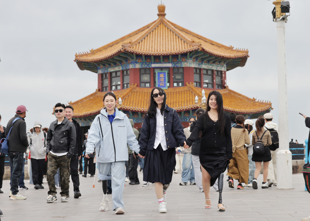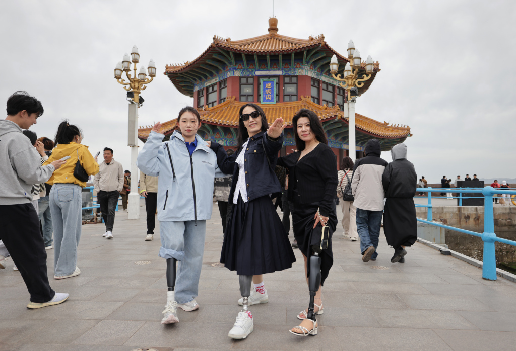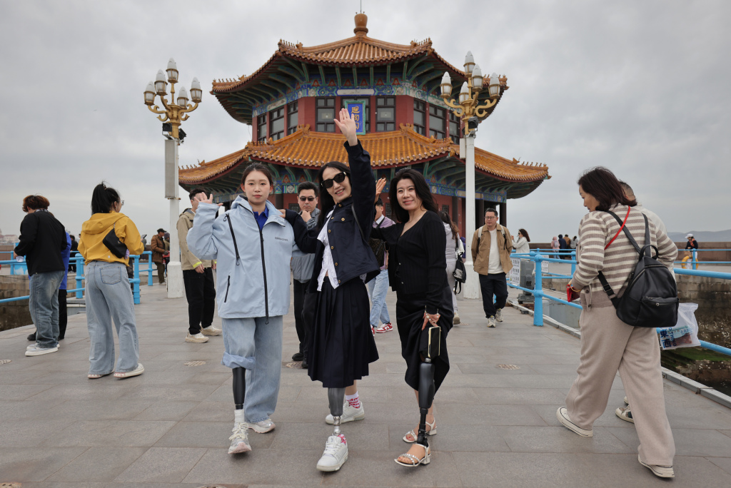4月21日下午,青岛栈桥风景区,一群行人吸引了众多游客目光。他们步履稍缓,行走间略带摇晃,却始终笑容灿烂,坦然迈步在景区步道上,大方露出义肢。一行人一路赏海景、观风光,还在回澜阁前并肩合影,定格下自信昂扬的瞬间。