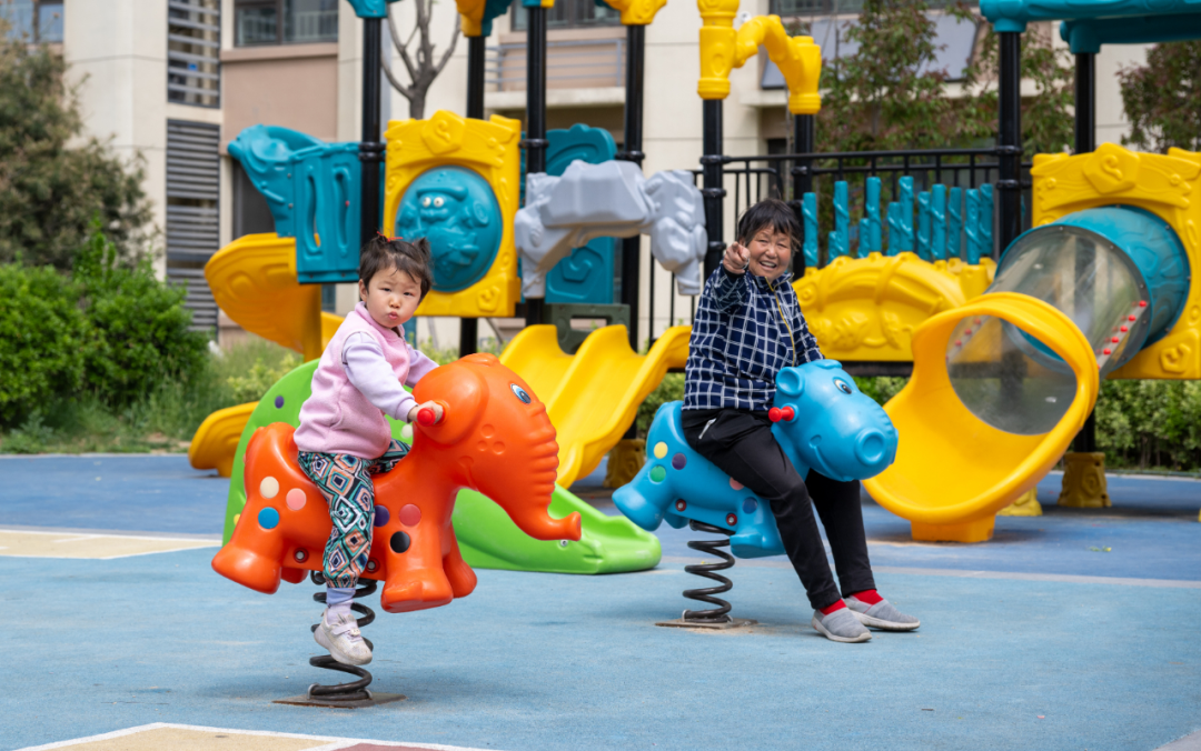社区内,宽敞的道路两侧绿意初展,儿童游乐区、健身步道等设施一应俱全。上午10点,社区小广场上已有不少居民在聊天、跳广场舞,孩子们在游乐场里滑滑梯、嬉戏玩耍。笑容挂在每个人脸上,新生活的温度触手可及。